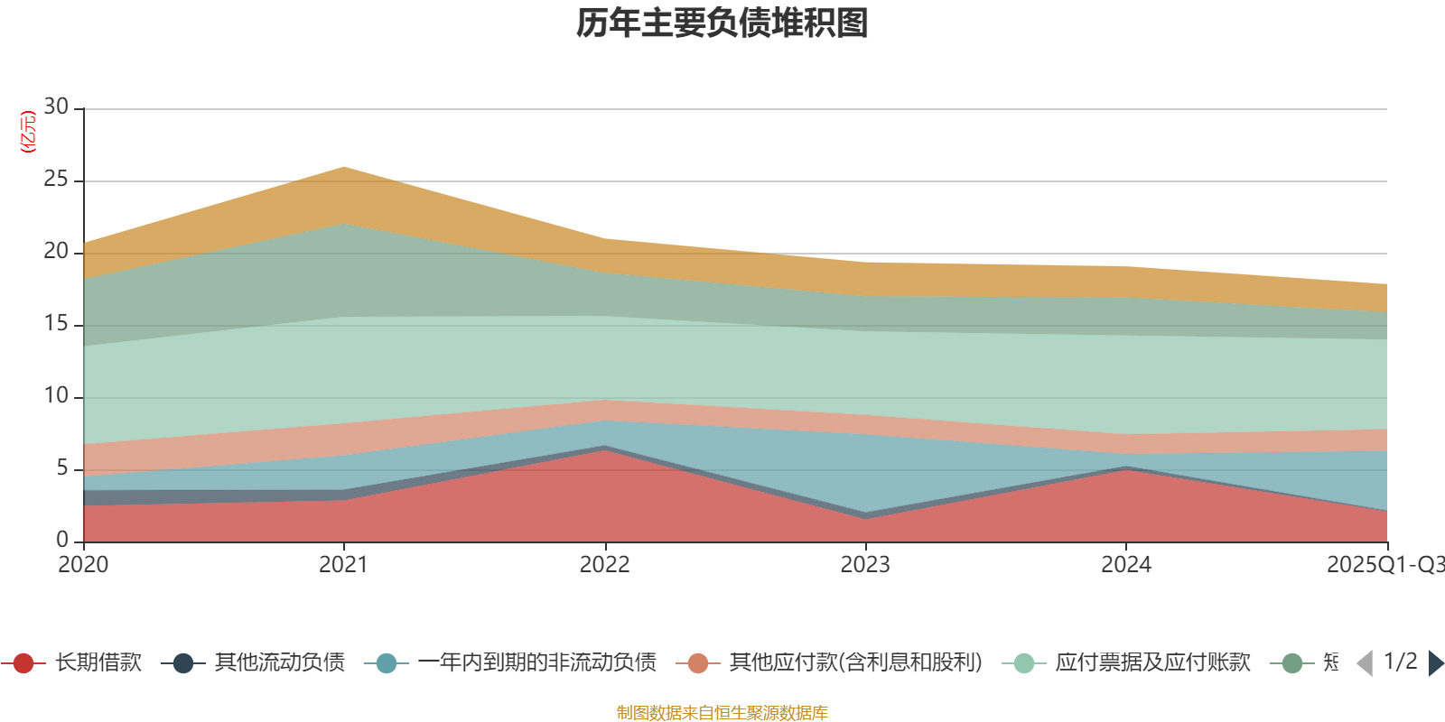 负债重大变化方面,截至2025年三季度末,公司一年内到期的非流动负债较上年末增加395.37%,占公司总资产比重上升10.23个百分点;长期借款较上年末减少57.99%,占公司总资产比重下降7.83个百分点;短期借款较上年末减少28.61%,占公司总资产比重下降1.8个百分点;其他应付款(含利息和股利)较上年末增加10.72%,占公司总资产比重上升0.7个百分点。
