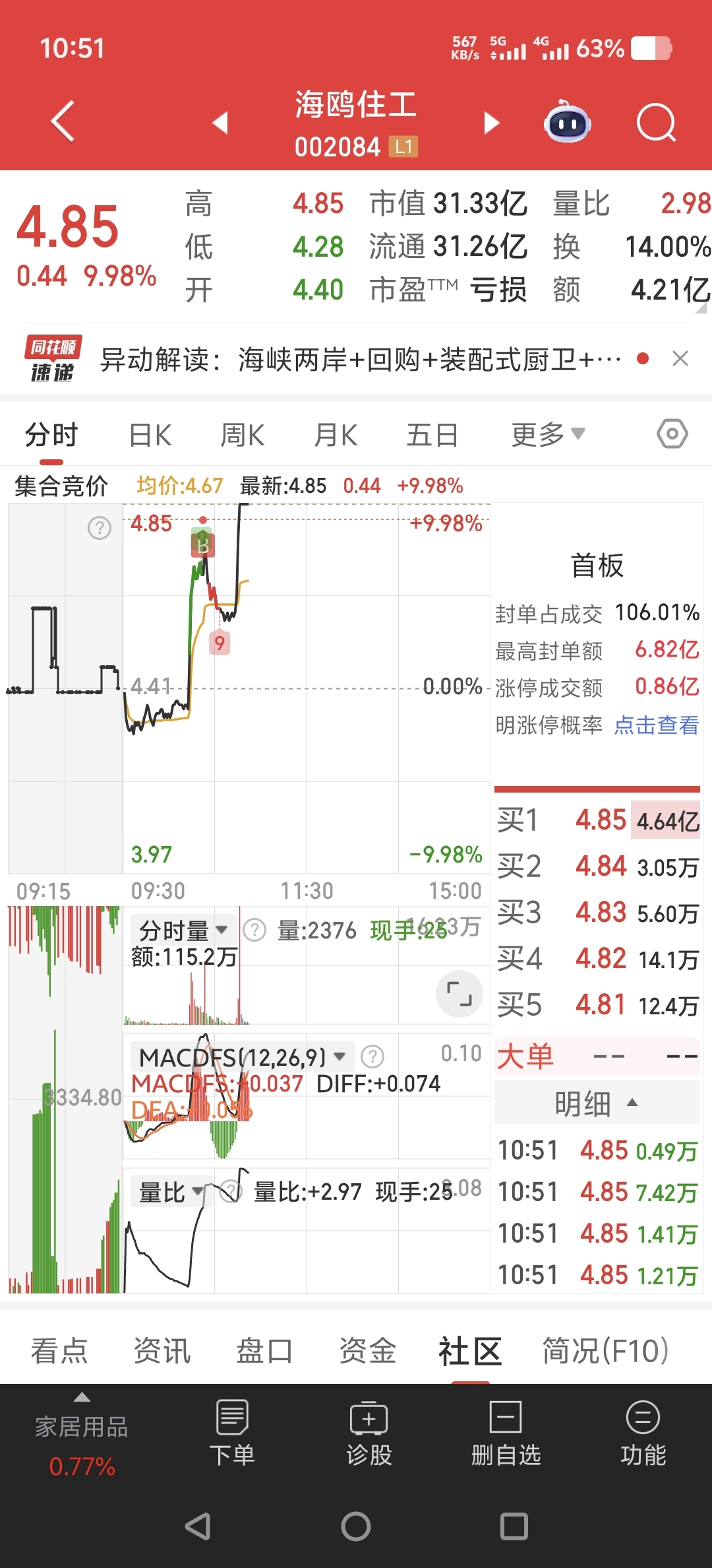 $海鸥住工(SZ002084)$ 第1次打板,还有点儿小害怕
