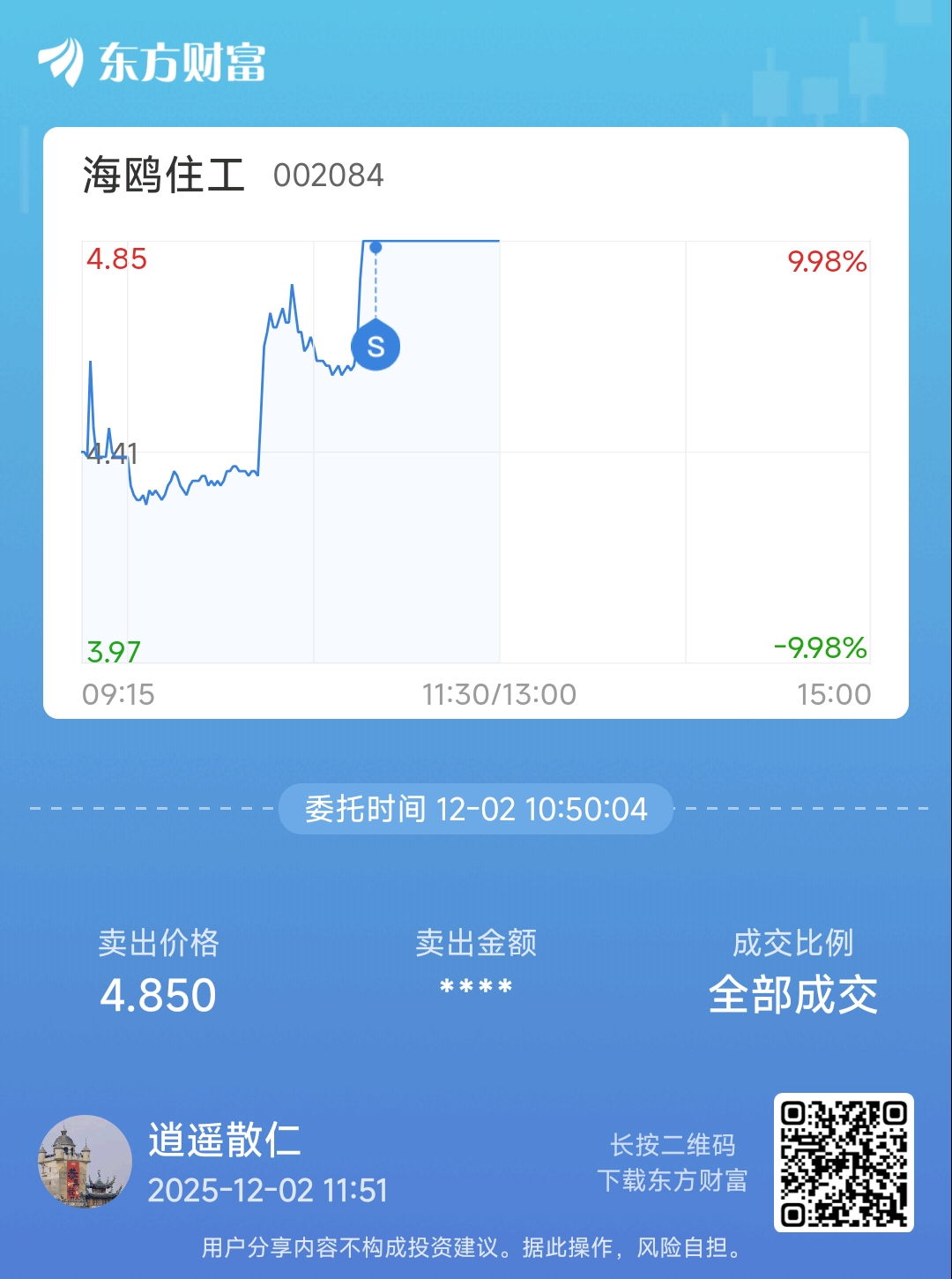 $海鸥住工(SZ002084)$ 留下的发财,兄弟们,我先撤了