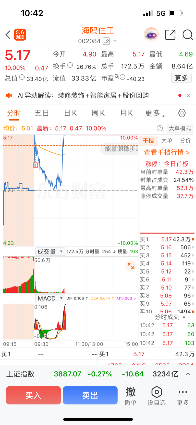 $海鸥住工(SZ002084)$ 前一个小时我都绝望了