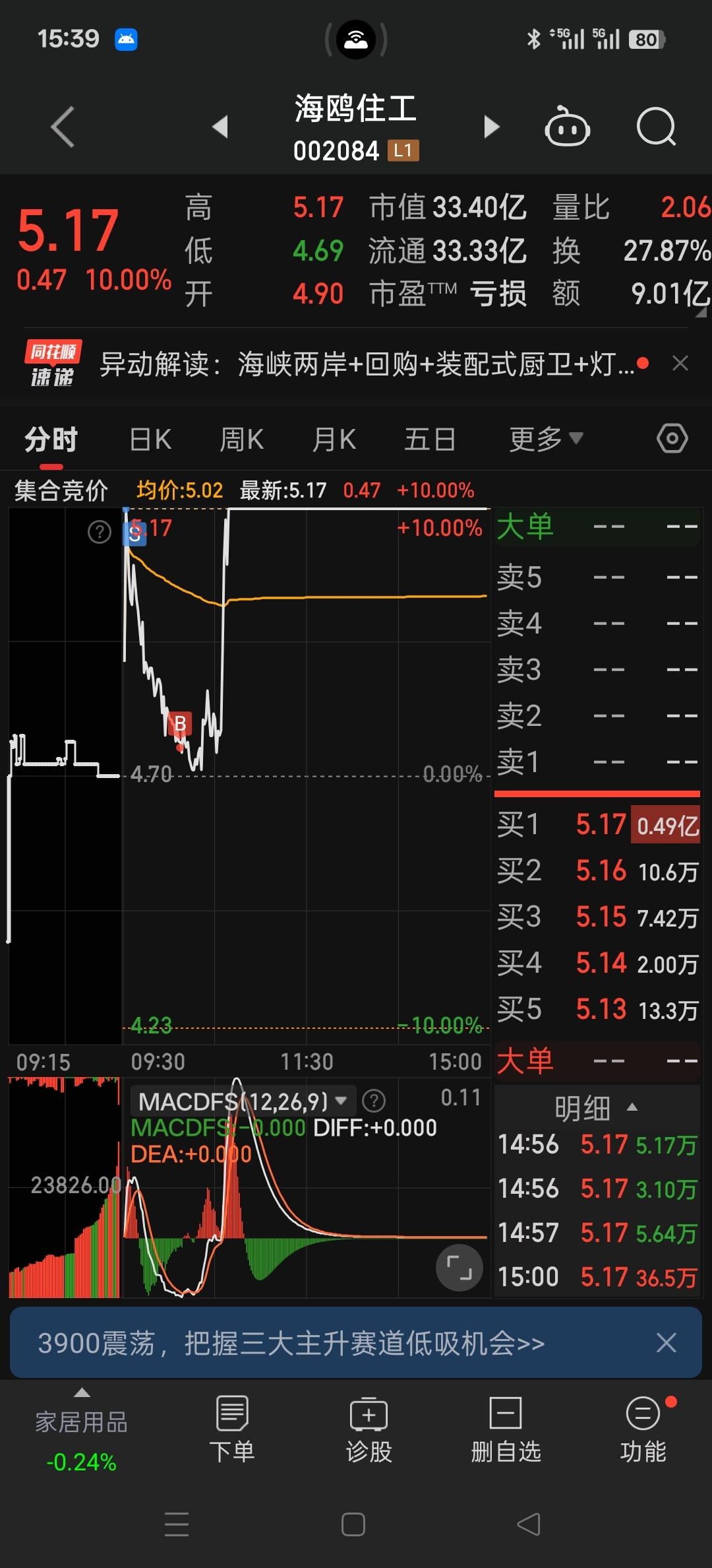 $海鸥住工(SZ002084)$ 终于蒙对了一次