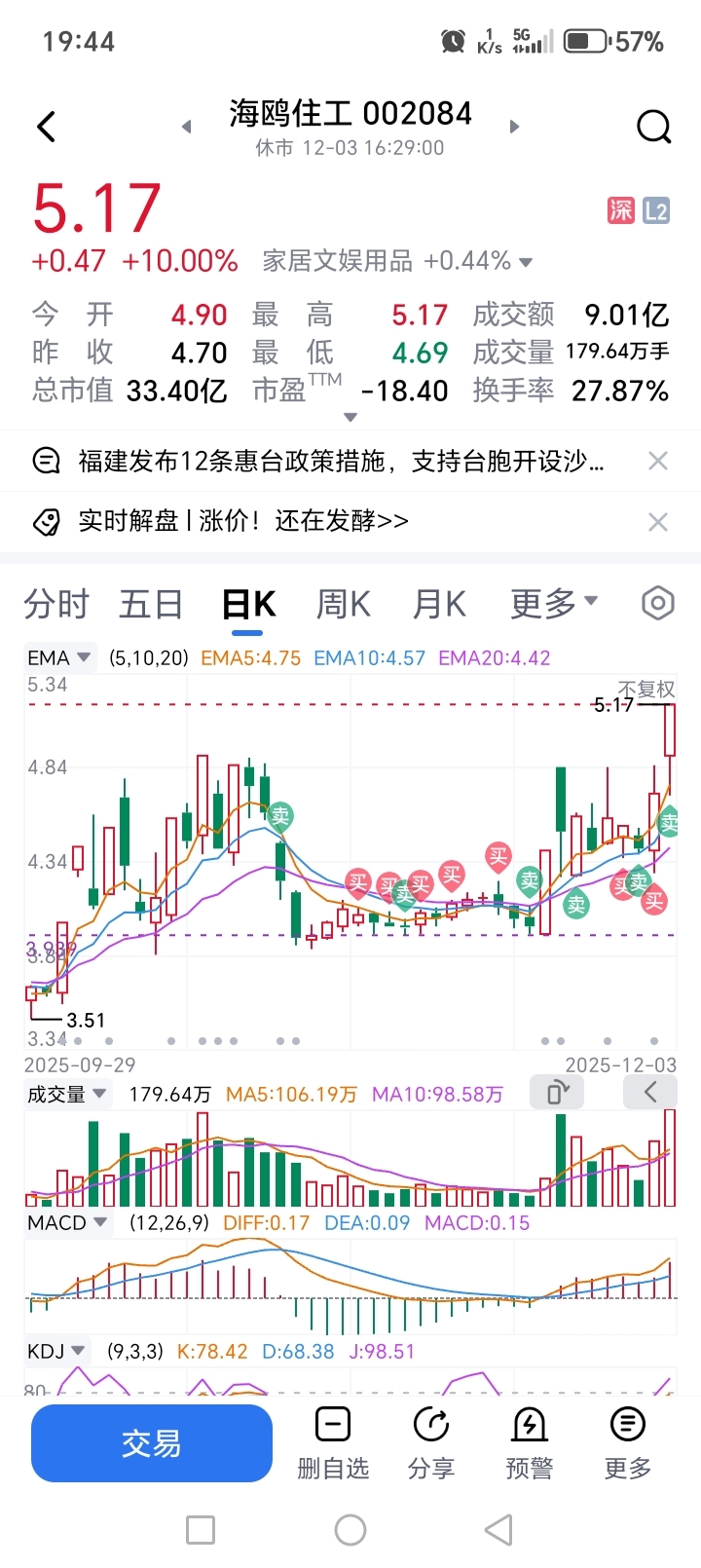 $海鸥住工(SZ002084)$ 卖了一半降点仑位,有机会再买回来,不跌就一直拿着了