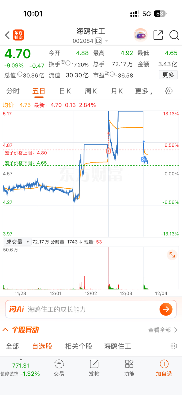 $海鸥住工(SZ002084)$ 恶庄,亏了1个多点跑了