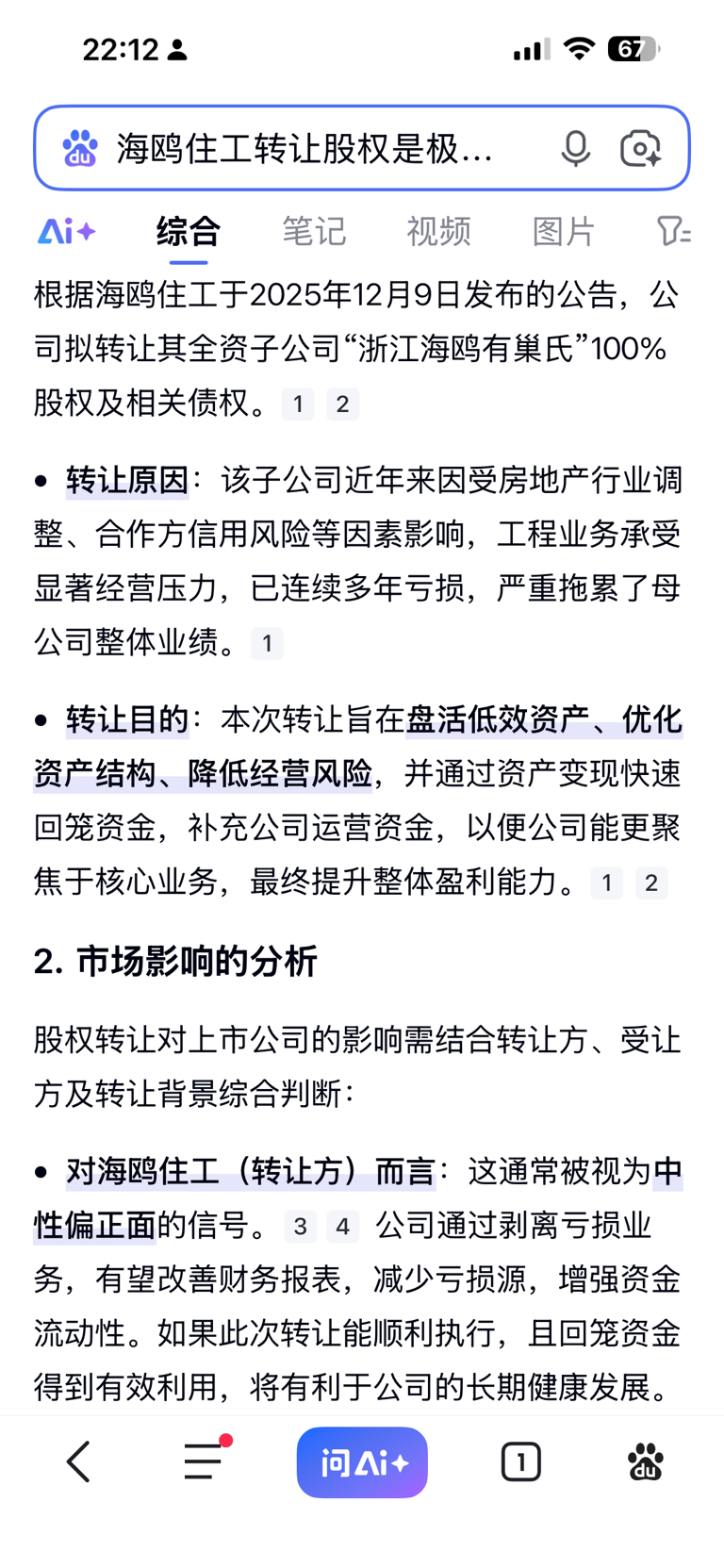 $海鸥住工(SZ002084)$ 中性偏正面……个人认为,此次转让是好事~否则每年拖垮母公司的财务~