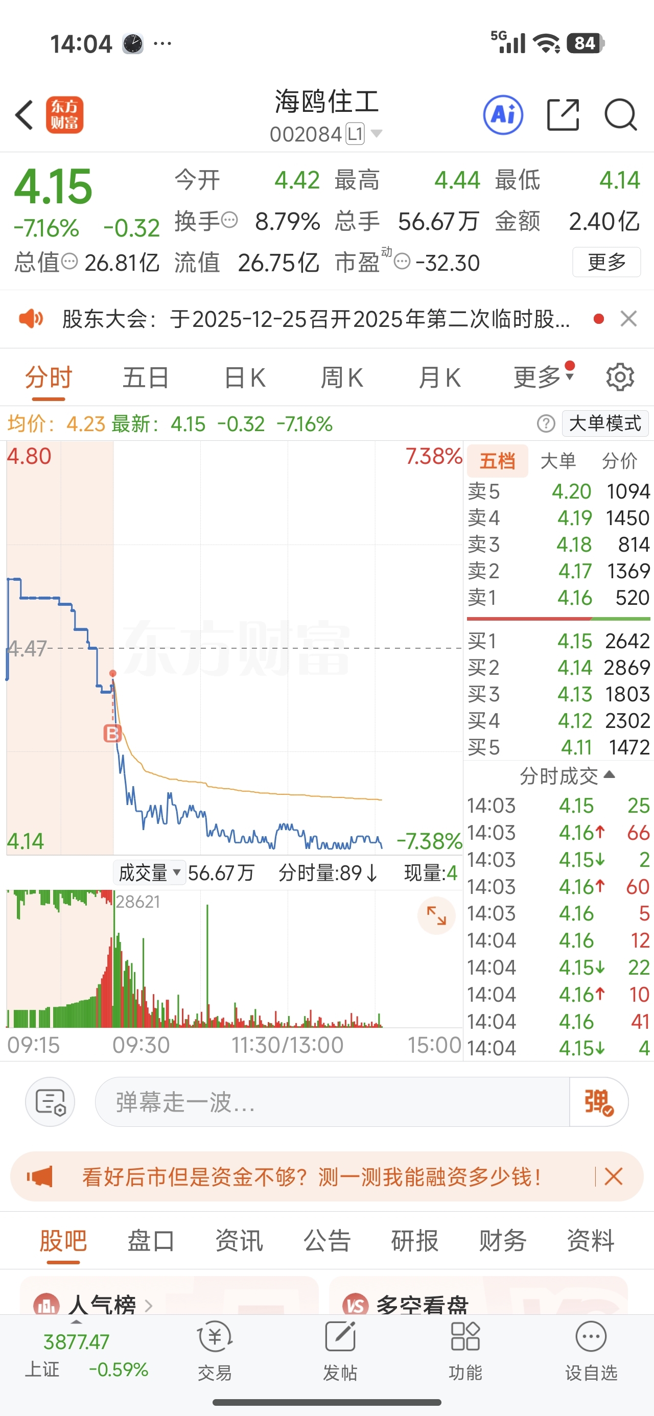 $海鸥住工(SZ002084)$ 咋办呀,同志们