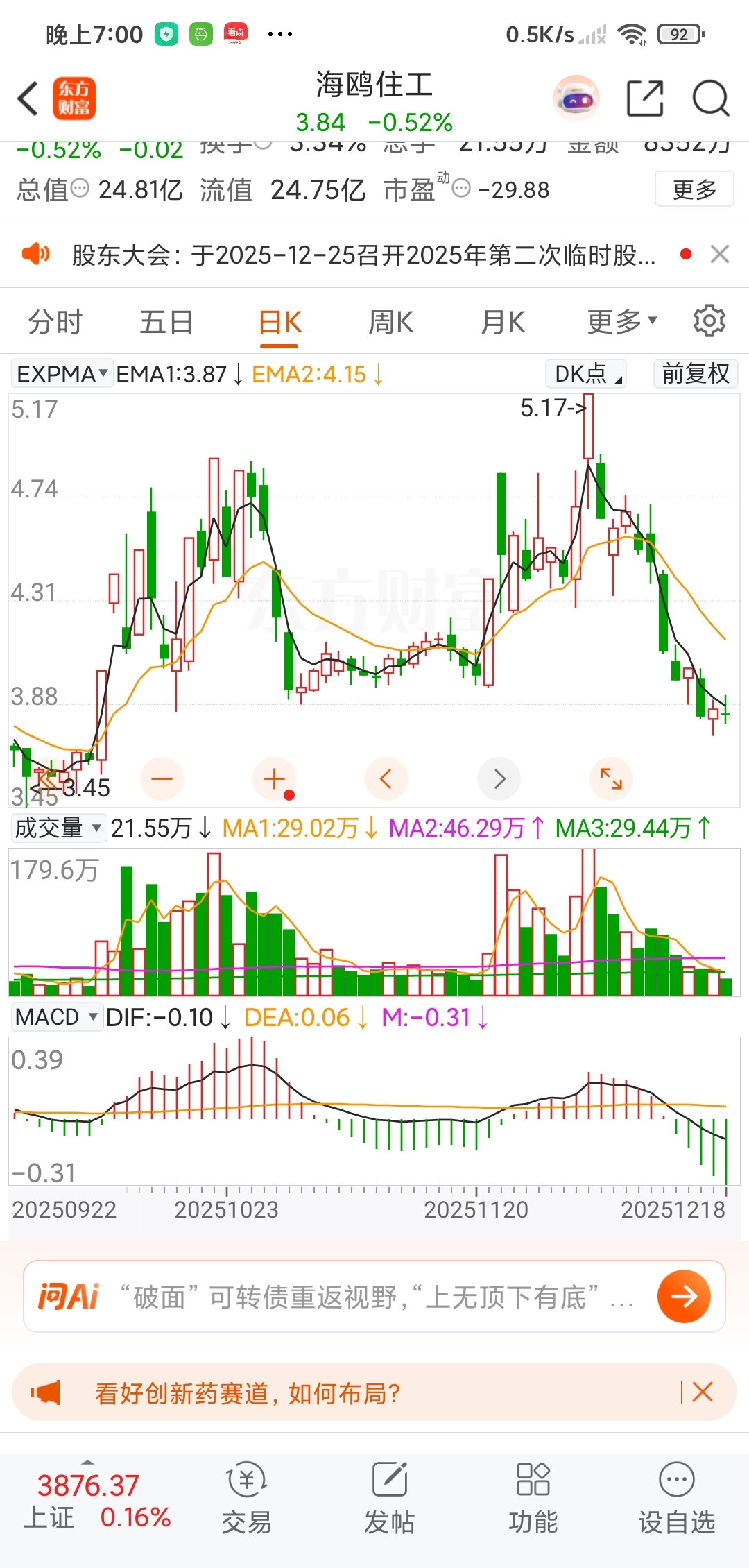 $海鸥住工(SZ002084)$ 被资金边缘化的股票。 A股里90%以上的股票都是这样。