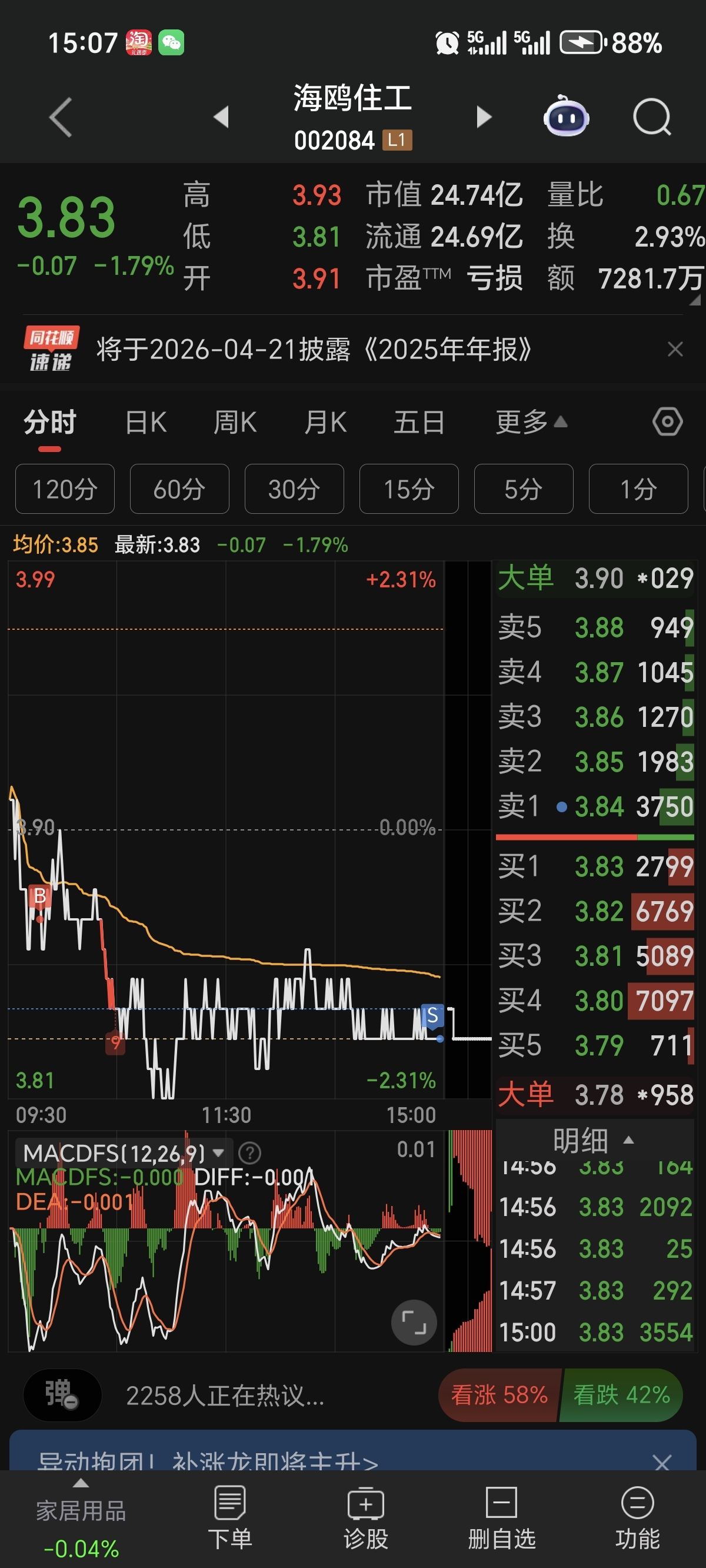 牛逼,太牛逼了。割了一半3.97的本。不看了。跌多了补回来。