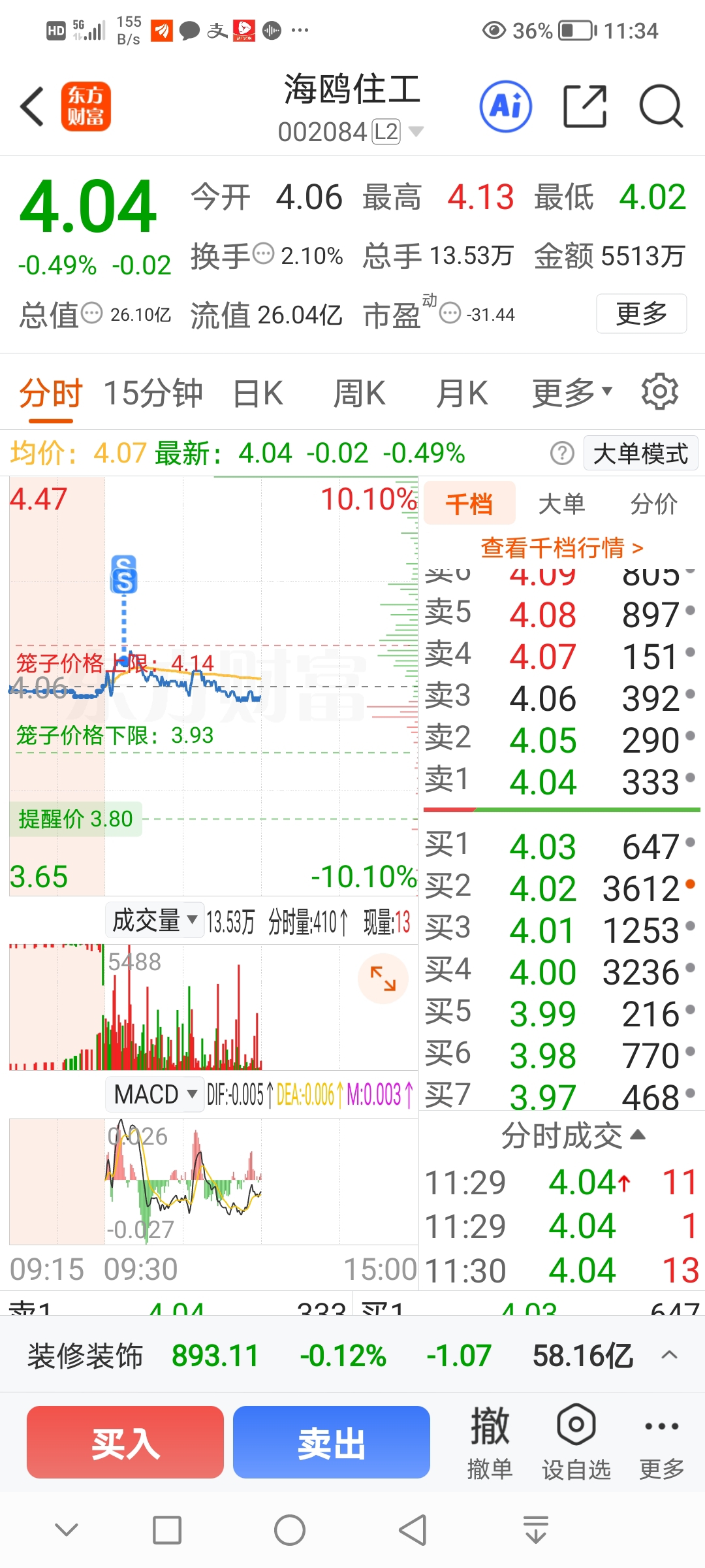 $海鸥住工(SZ002084)$ 今天抓住啦,等你下来3.99~3.95区间干回来,