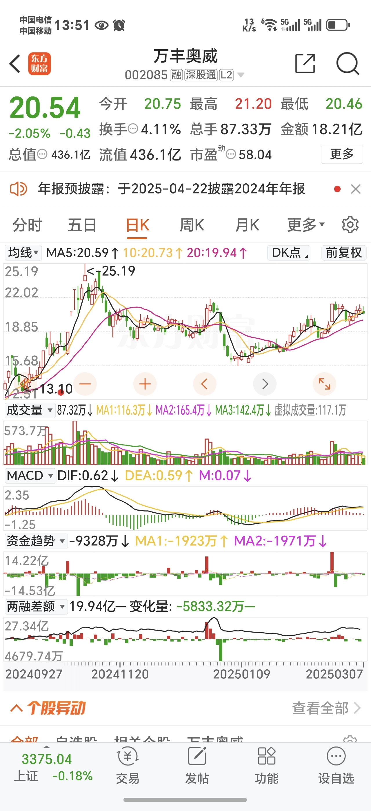 $万丰奥威(SZ002085)$ 熬了这么多天,可以跑了,顶分型成立