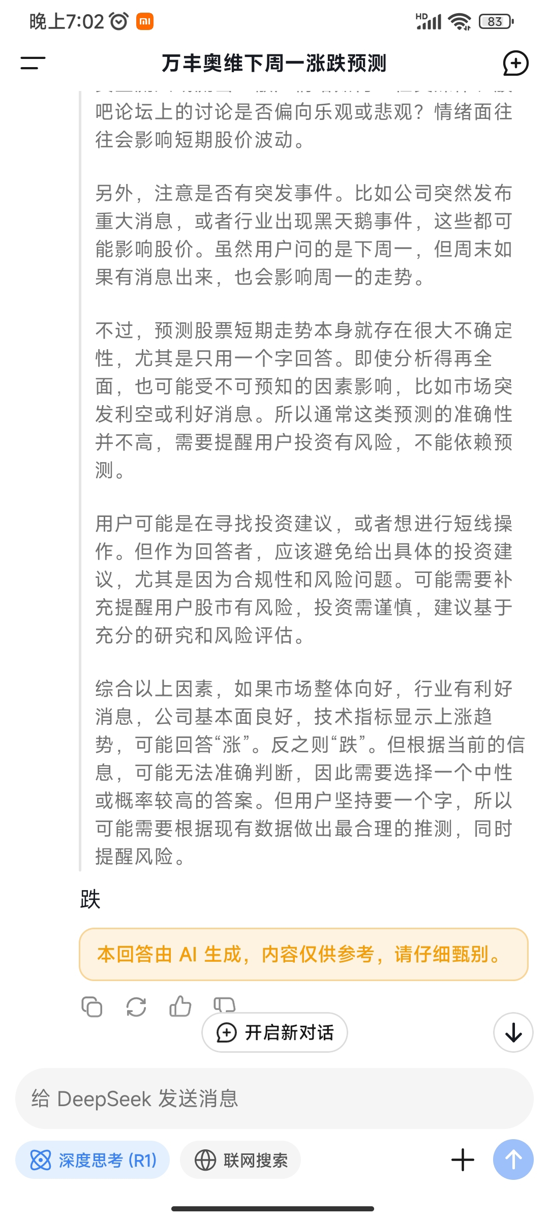 温馨提示: 1.根据《证券法》规定,禁止编造、传播虚假信息或者误导性信息,扰乱证券市场;2.用户在本社区发表的所有资料、言论等仅代表个人观点,与本网站立场无关,不对您构成任何投资建议。用户应基于自己的独立判断,自行决定证券投资并承担相应风险。《东方财富社区管理规定》