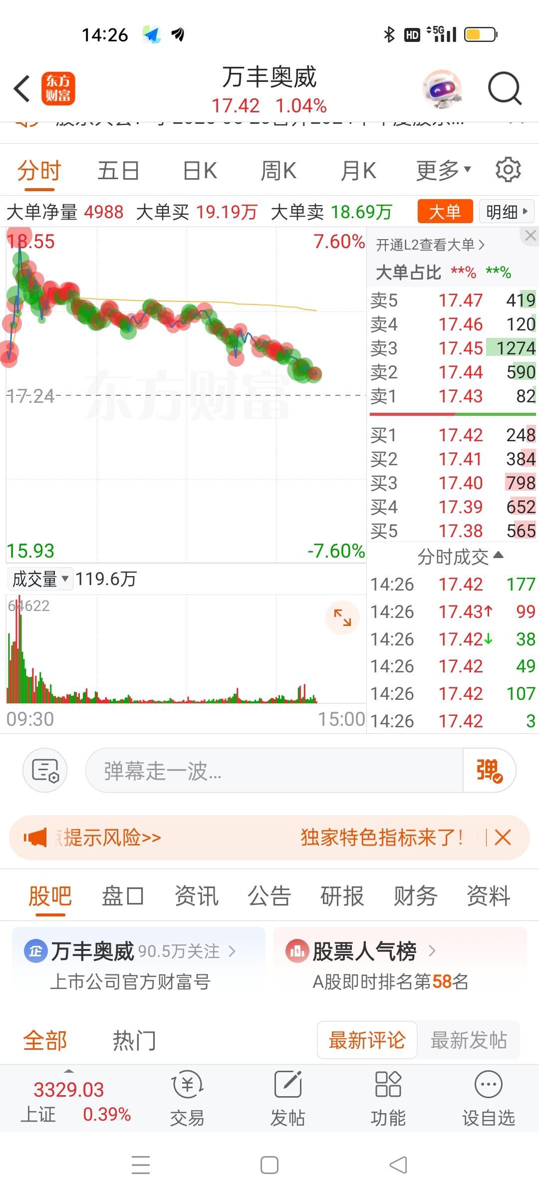 $万丰奥威(SZ002085)$ 全是卖单。明天有的玩了