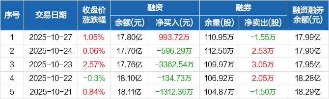 万丰奥威:融资净买入993.72万元,融资余额17.8亿元(10-27)