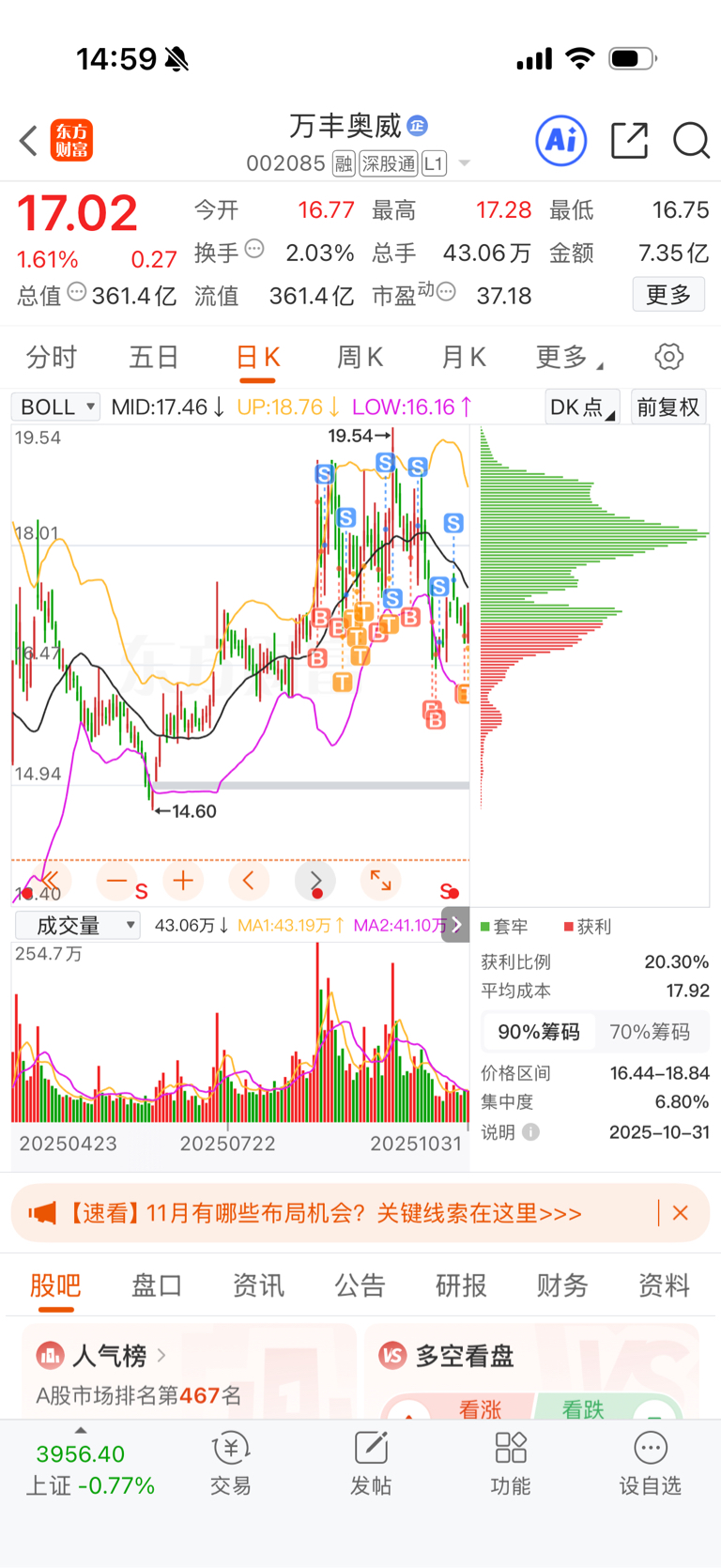$万丰奥威(SZ002085)$