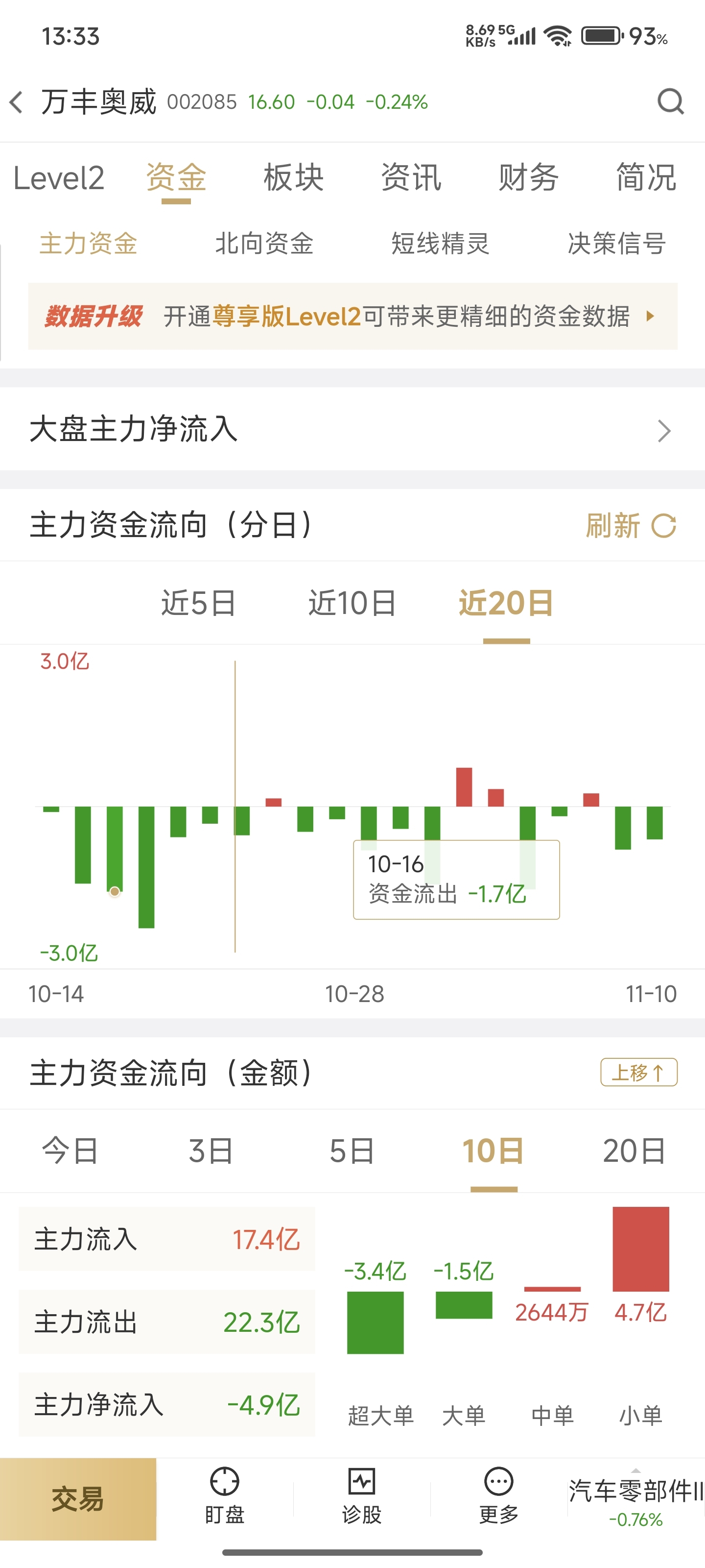 $万丰奥威(SZ002085)$ 资金一直只出不进!末日的节奏!在那那个位置卖对后天都是对的!单边跌势