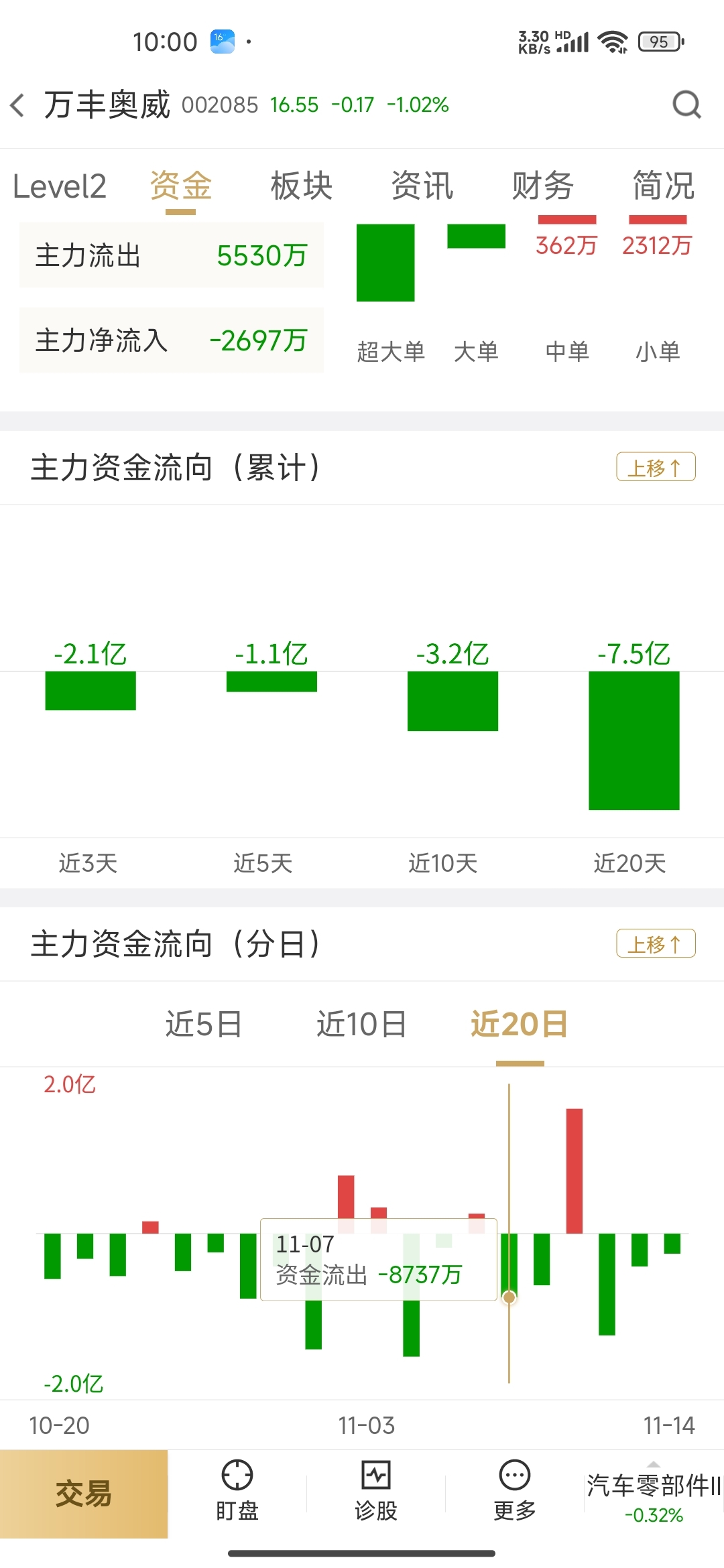 $万丰奥威(SZ002085)$ 每次拉升都是为了出逃!老套路!今天卖还是明天最高点了吧!资金都是拉升后逃亡一星期!又是下跌的一天
