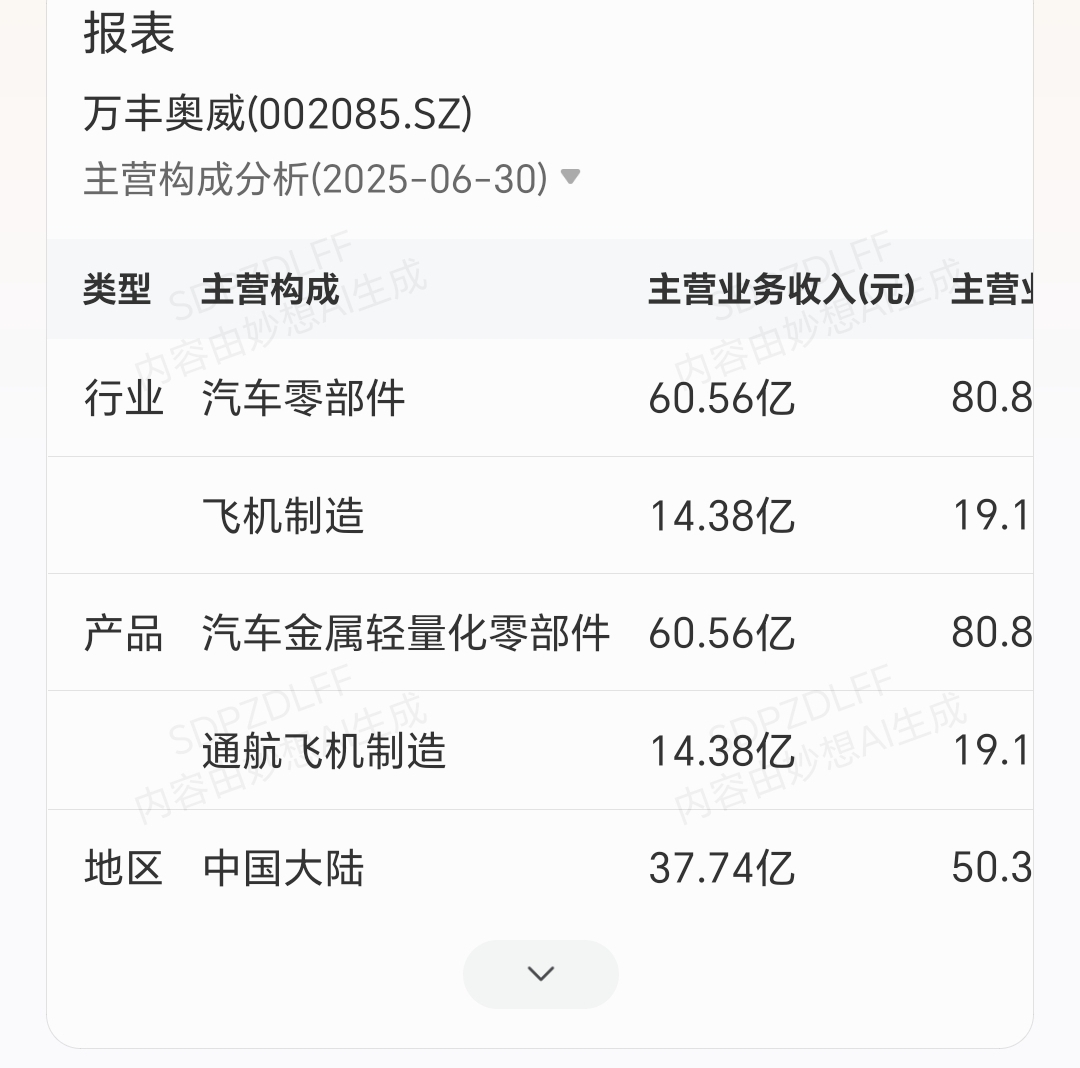 $万丰奥威(SZ002085)$ 你们天天低空低空低个銮,连他主业是什么都不知道。天天吹低空。他是汽车金属轻量化零部件。