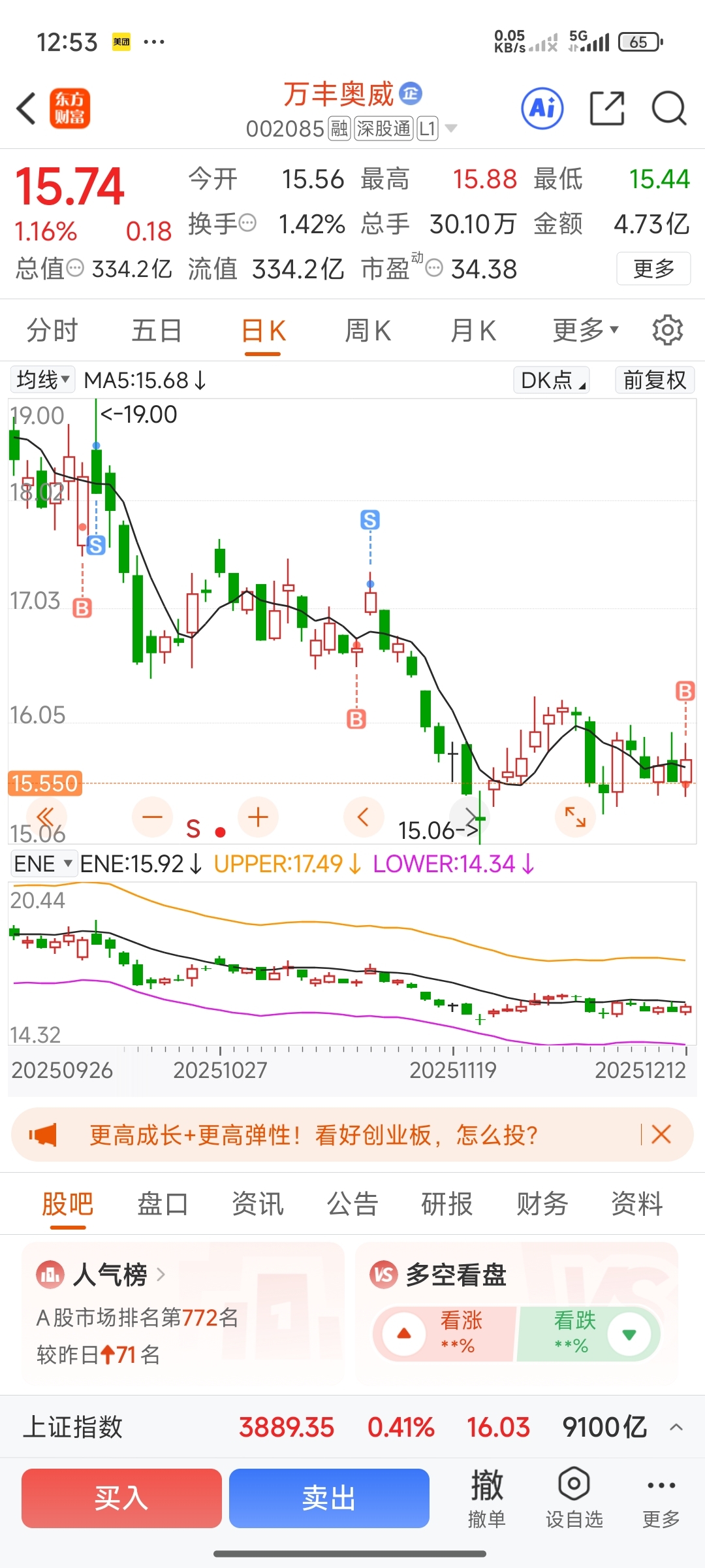 $万丰奥威(SZ002085)$ 明天能赚两个点吗