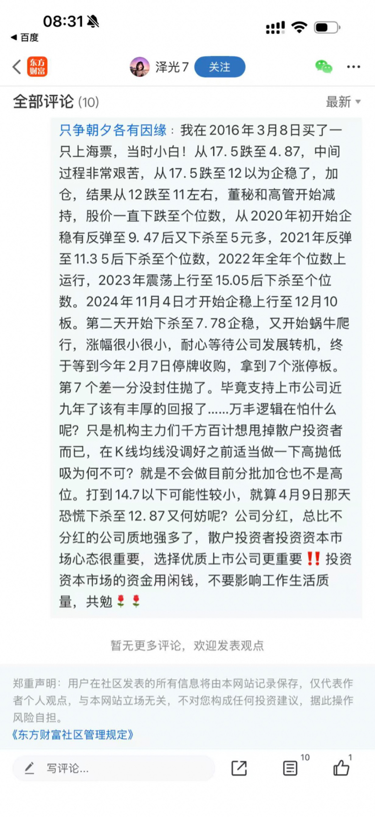 温馨提示: 1.根据《证券法》规定,禁止编造、传播虚假信息或者误导性信息,扰乱证券市场;2.用户在本社区发表的所有资料、言论等仅代表个人观点,与本网站立场无关,不对您构成任何投资建议。用户应基于自己的独立判断,自行决定证券投资并承担相应风险。《东方财富社区管理规定》
