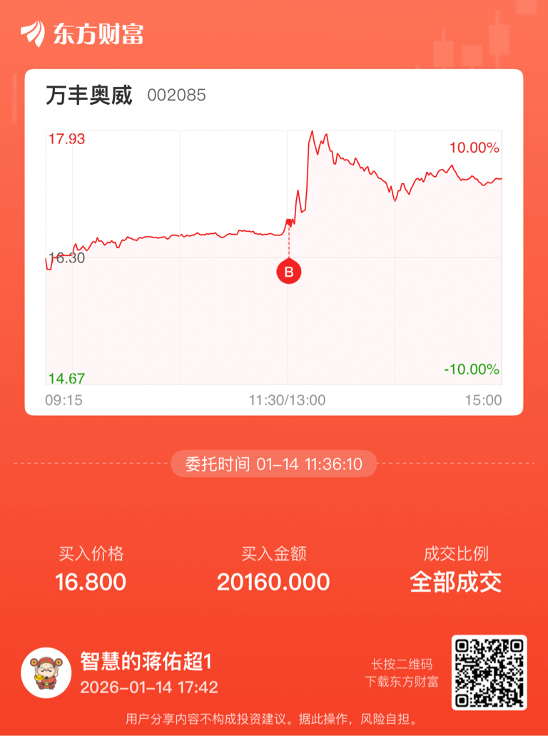 $万丰奥威(SZ002085)$ 下午涨停还以为自己股神附体,明天好慌