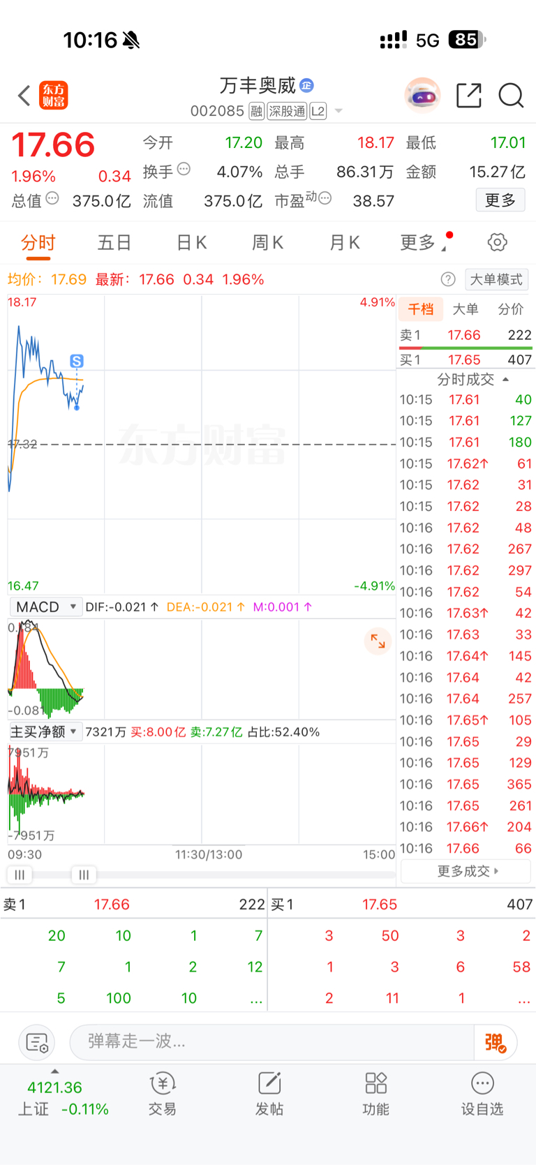 $万丰奥威(SZ002085)$ 我卖了,你可以拉了