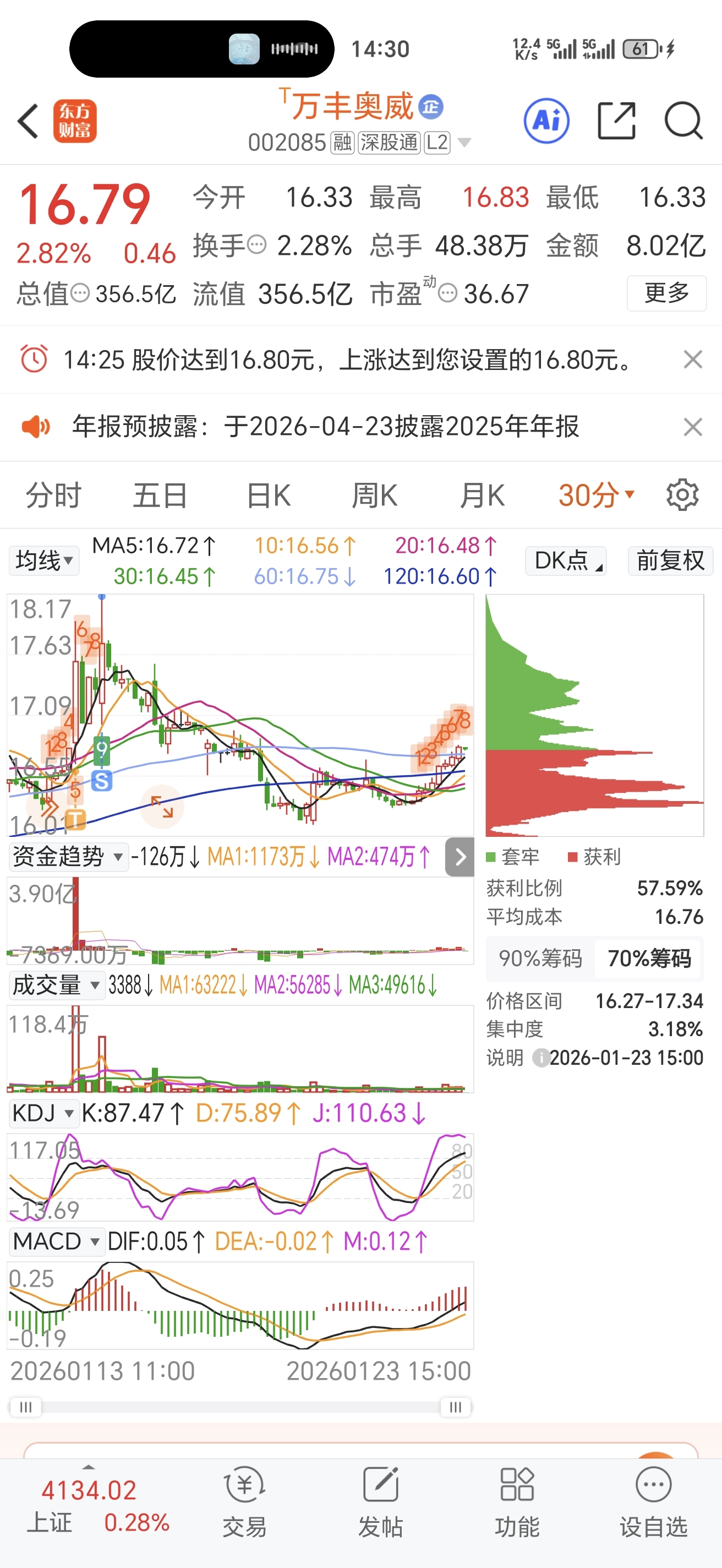 $万丰奥威(SZ002085)$ 爱莲说,下周一直接突破17并稳住17,成交量放大,那么万丰又重新进入升浪潮…只要稳住17以上,我就敢继续加仓玩T…