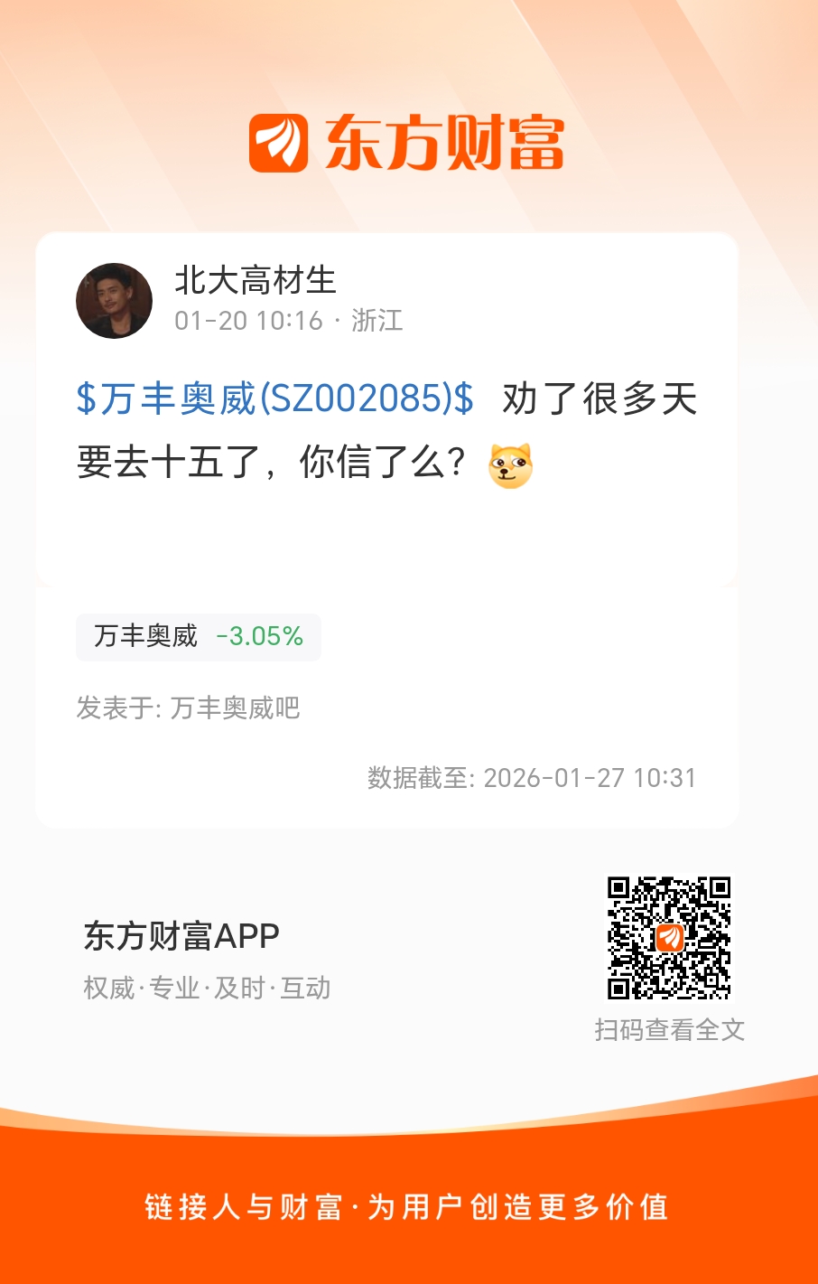 $万丰奥威(SZ002085)$  劝了很多天要去十五了,你信了么?