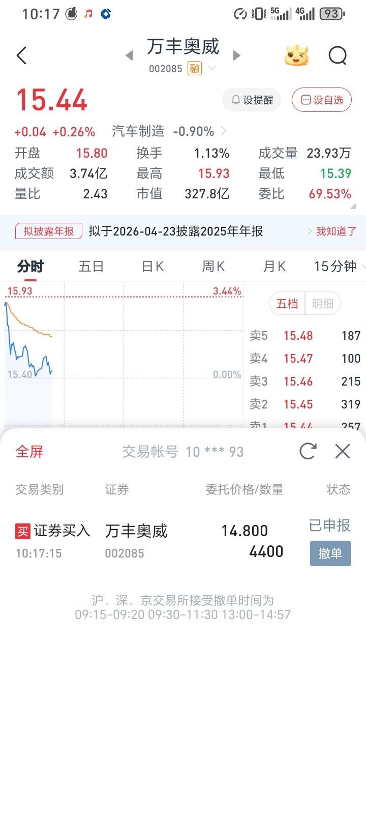 $万丰奥威(SZ002085)$ 挂好单了,就等买套