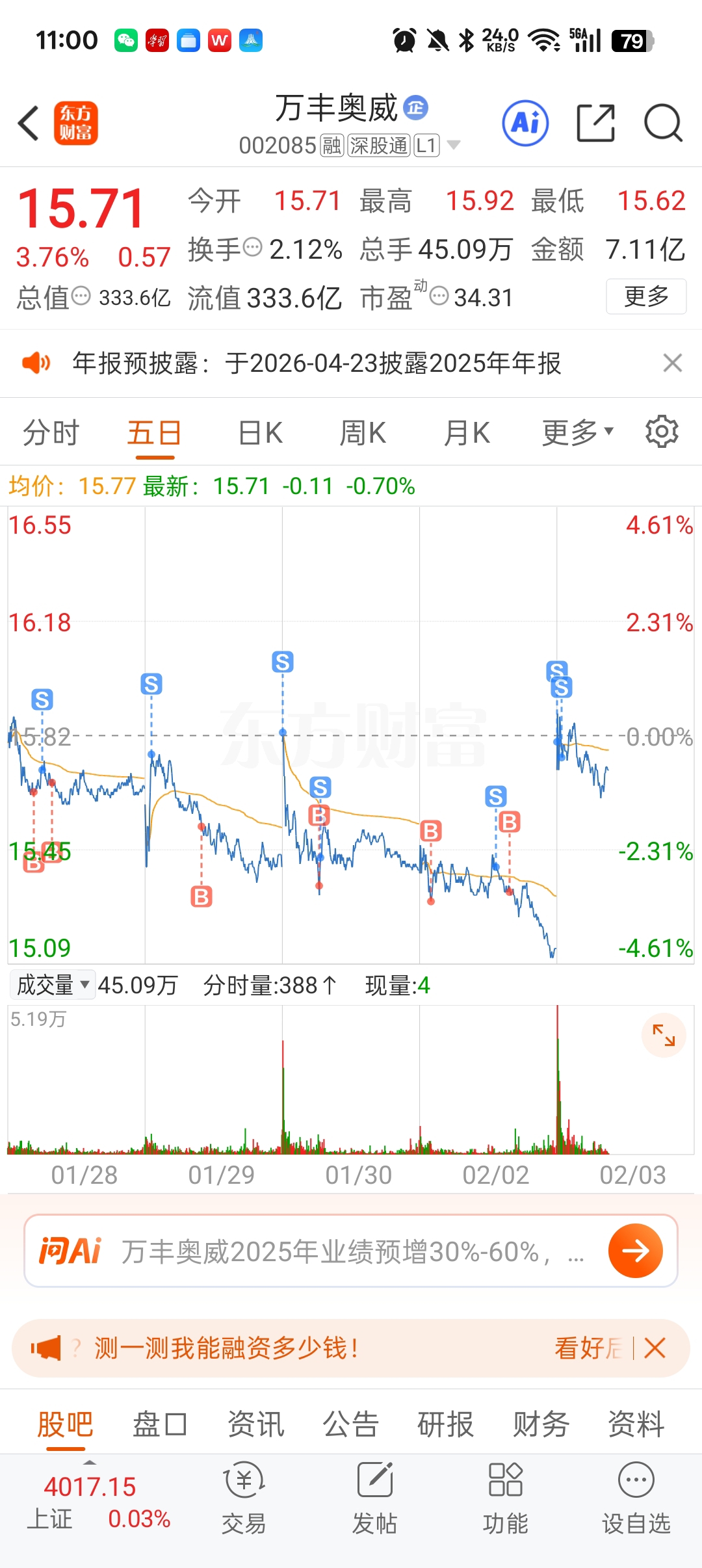$万丰奥威(SZ002085)$ 明早跌一点让我补,今天先不补了