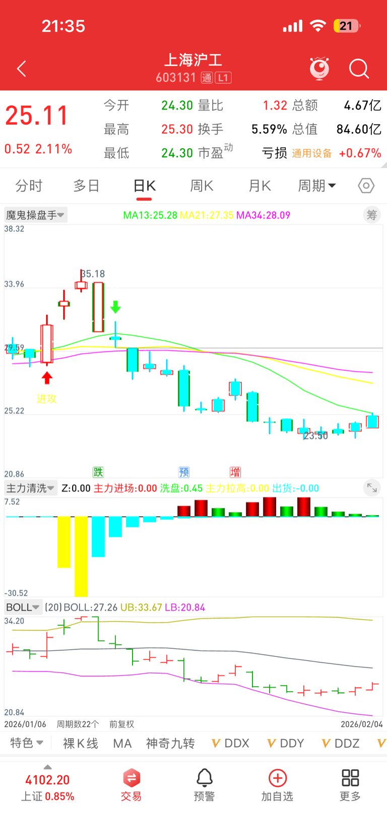 明天可以冲,上海沪工主力已经进入