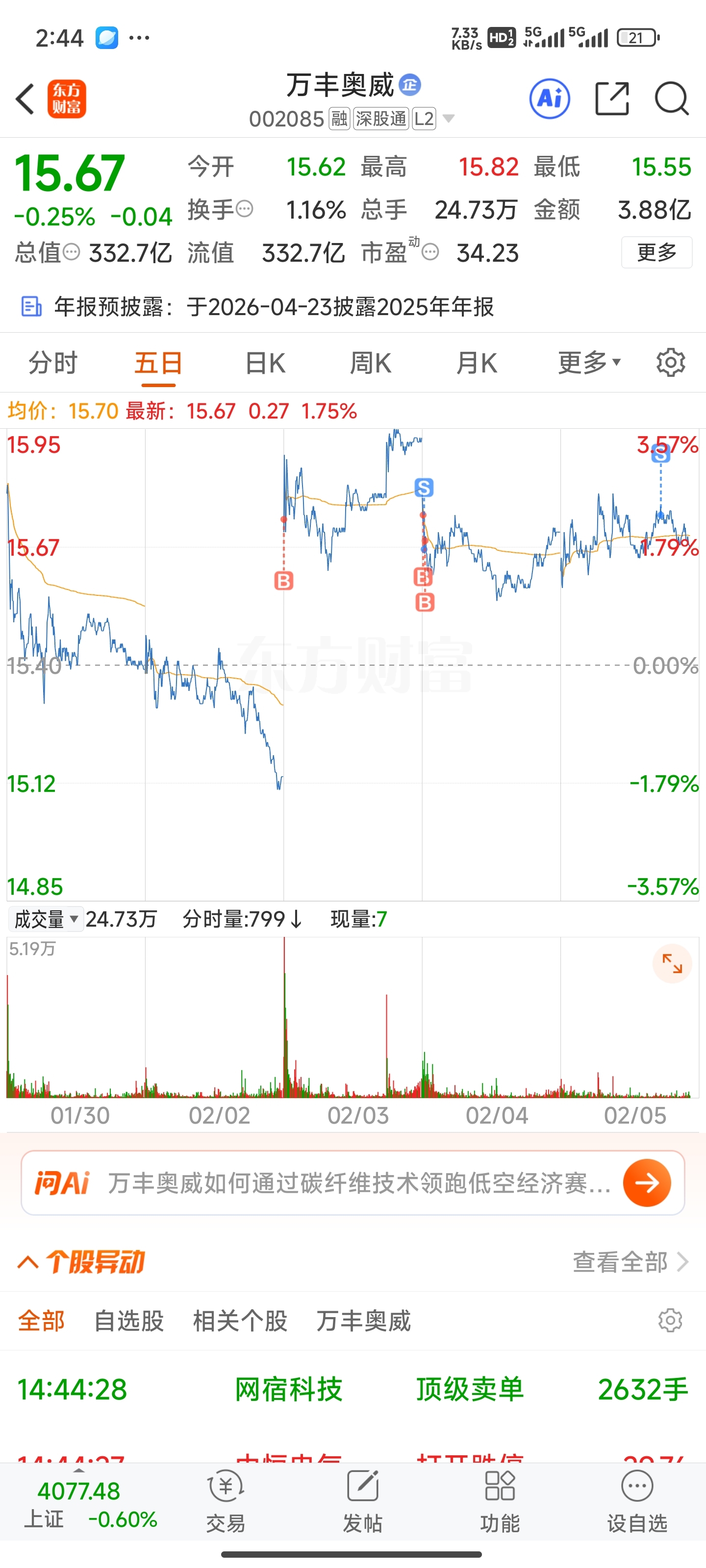 $万丰奥威(SZ002085)$ 我没赚钱,我卖了