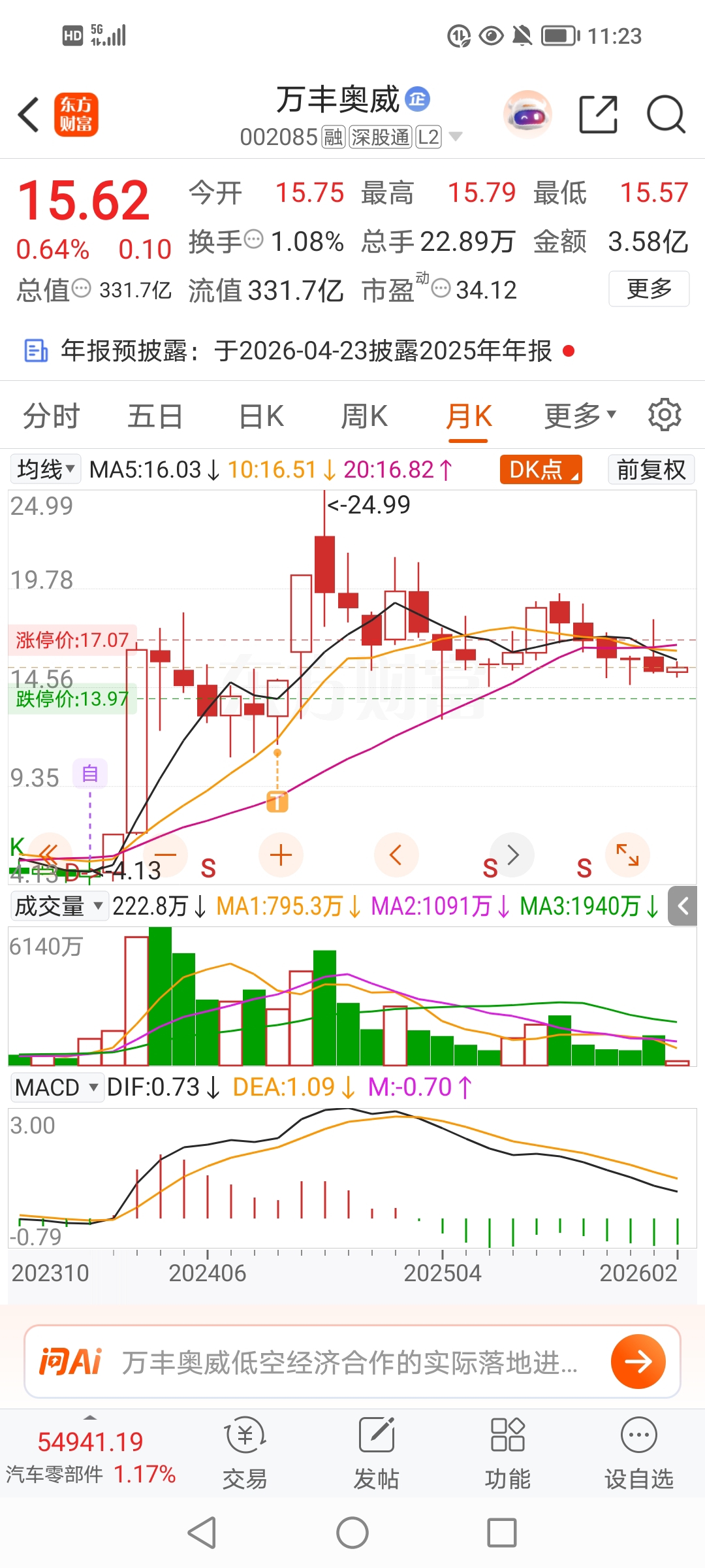 $万丰奥威(SZ002085)$ #炒股日记# #强势机会# #股市怎么看#