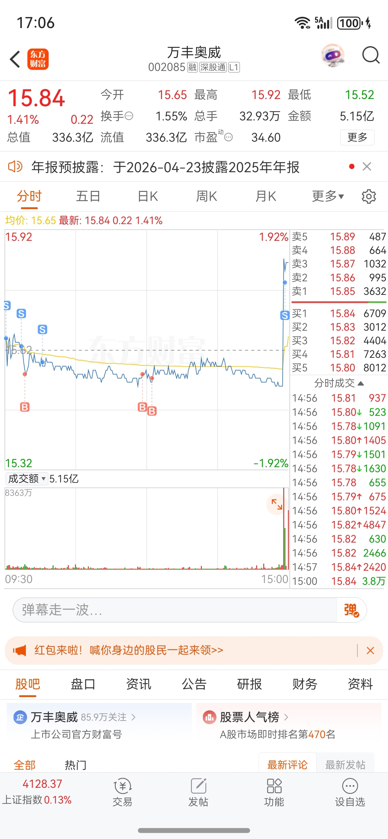 温馨提示: 1.根据《证券法》规定,禁止编造、传播虚假信息或者误导性信息,扰乱证券市场;2.用户在本社区发表的所有资料、言论等仅代表个人观点,与本网站立场无关,不对您构成任何投资建议。用户应基于自己的独立判断,自行决定证券投资并承担相应风险。《东方财富社区管理规定》