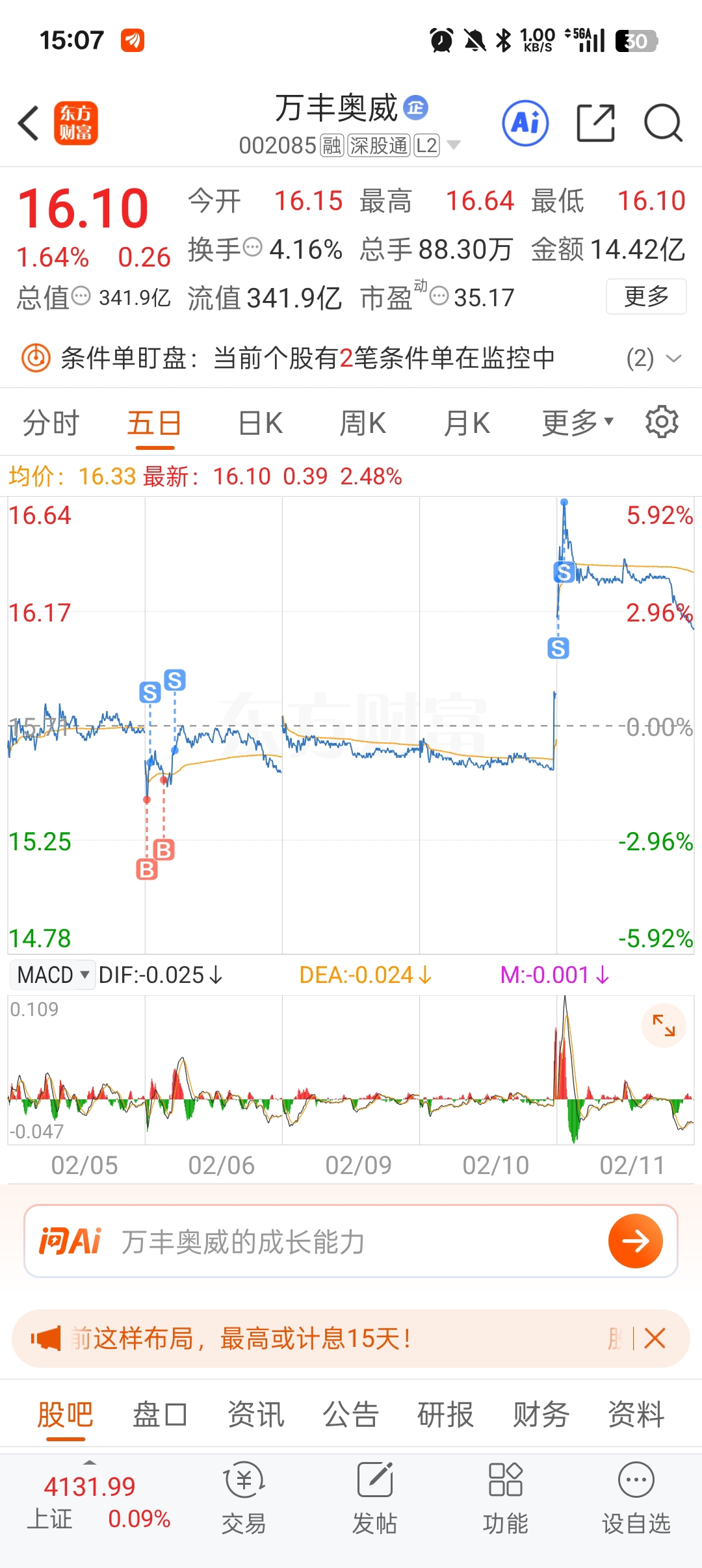 $万丰奥威(SZ002085)$ 前几天那点波动,是真懒得操作