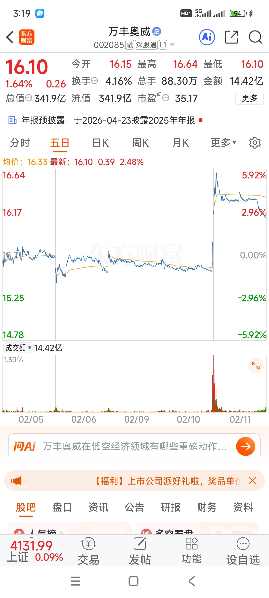 $万丰奥威(SZ002085)$ 我以为会收一个红长上影 !居然收了一个这么玩意!这个主力纯纯的不想叫我们散户好好过年!真的很可恶!祝没有格局的主力2026年做哪只票都坐庄失败公司最后破产清算!