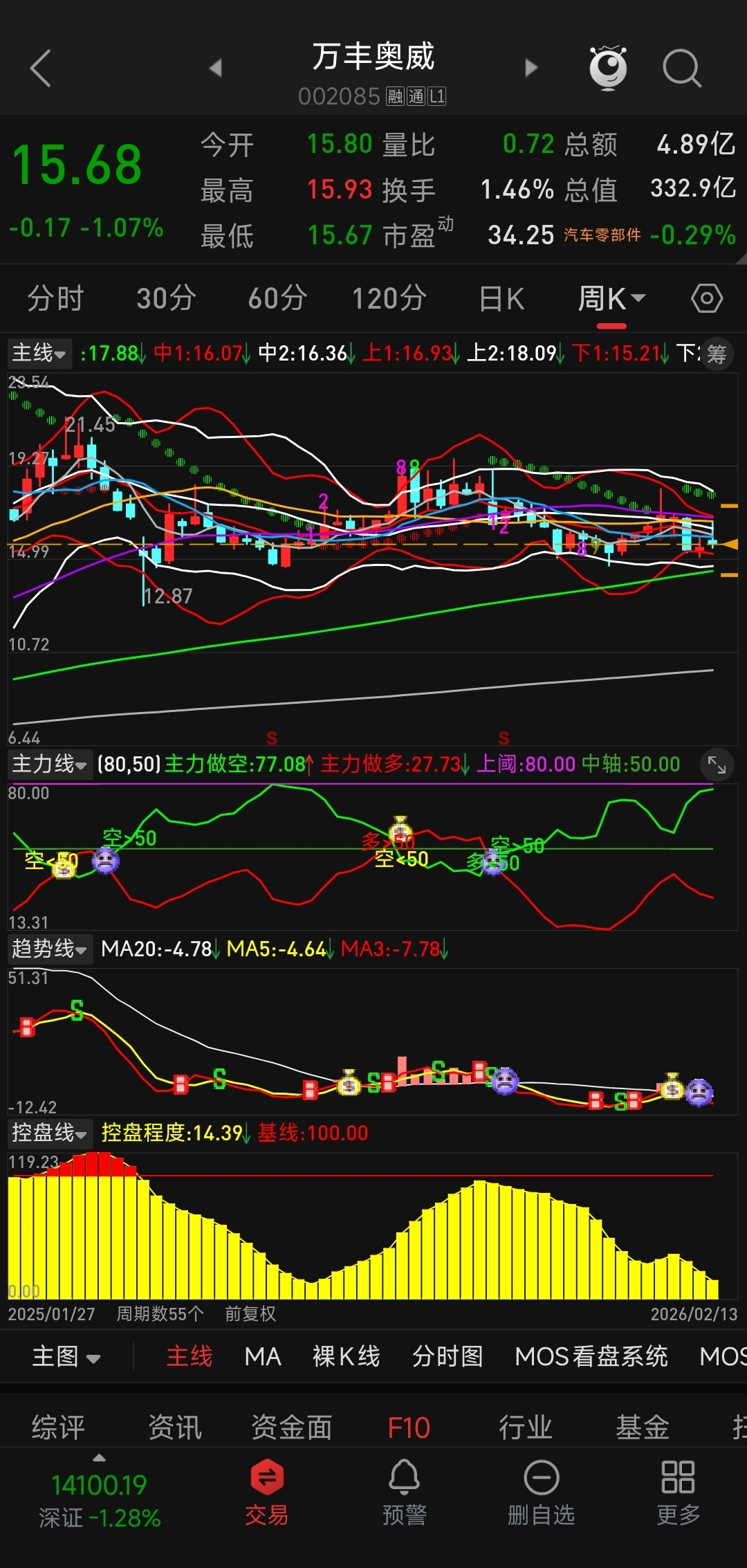 $万丰奥威(SZ002085)$ 周线级别大调整,没有几个月调整不完,遥遥无期。