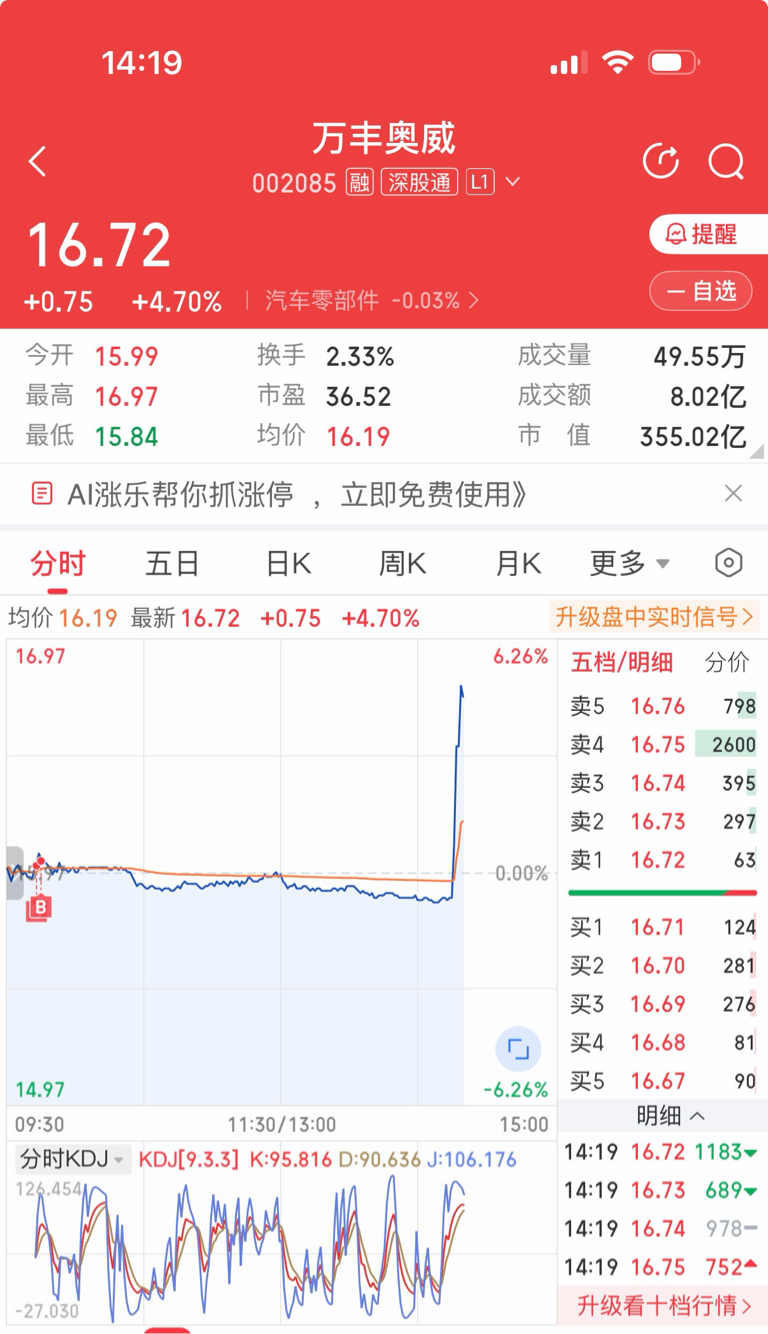 $万丰奥威(SZ002085)$ 怎么回事,我都没听到啥消息