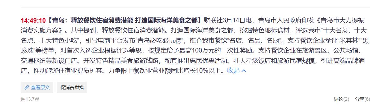 打造海洋美食之都,,,山东的海鲜谁打捞上来的,肯定是本土企业东方海洋呗,做水产的