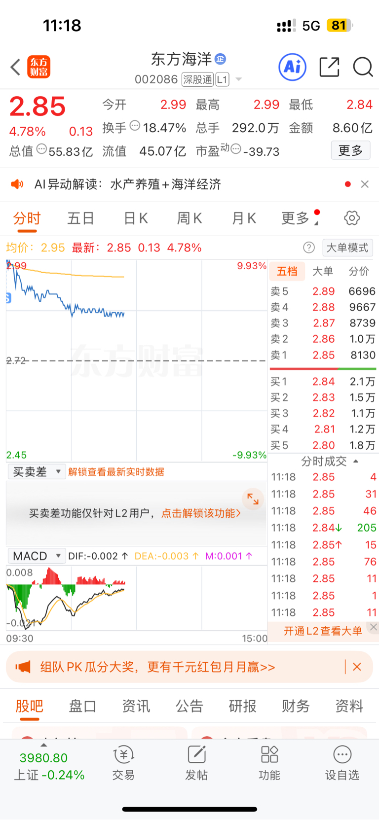$东方海洋(SZ002086)$ 感谢顶板哥