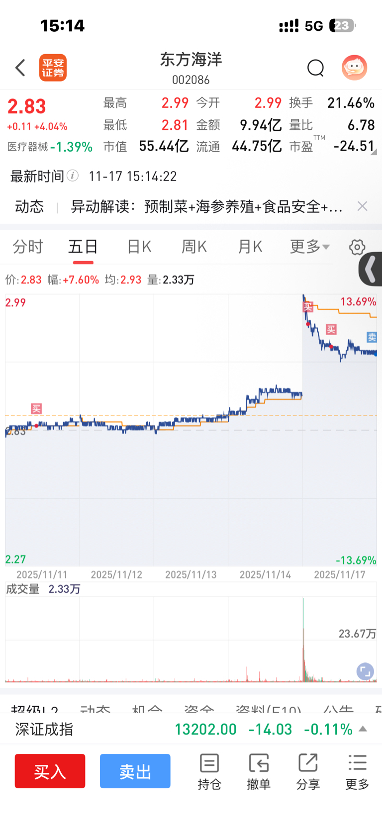 $东方海洋(SZ002086)$ 溜了溜了 心太累了