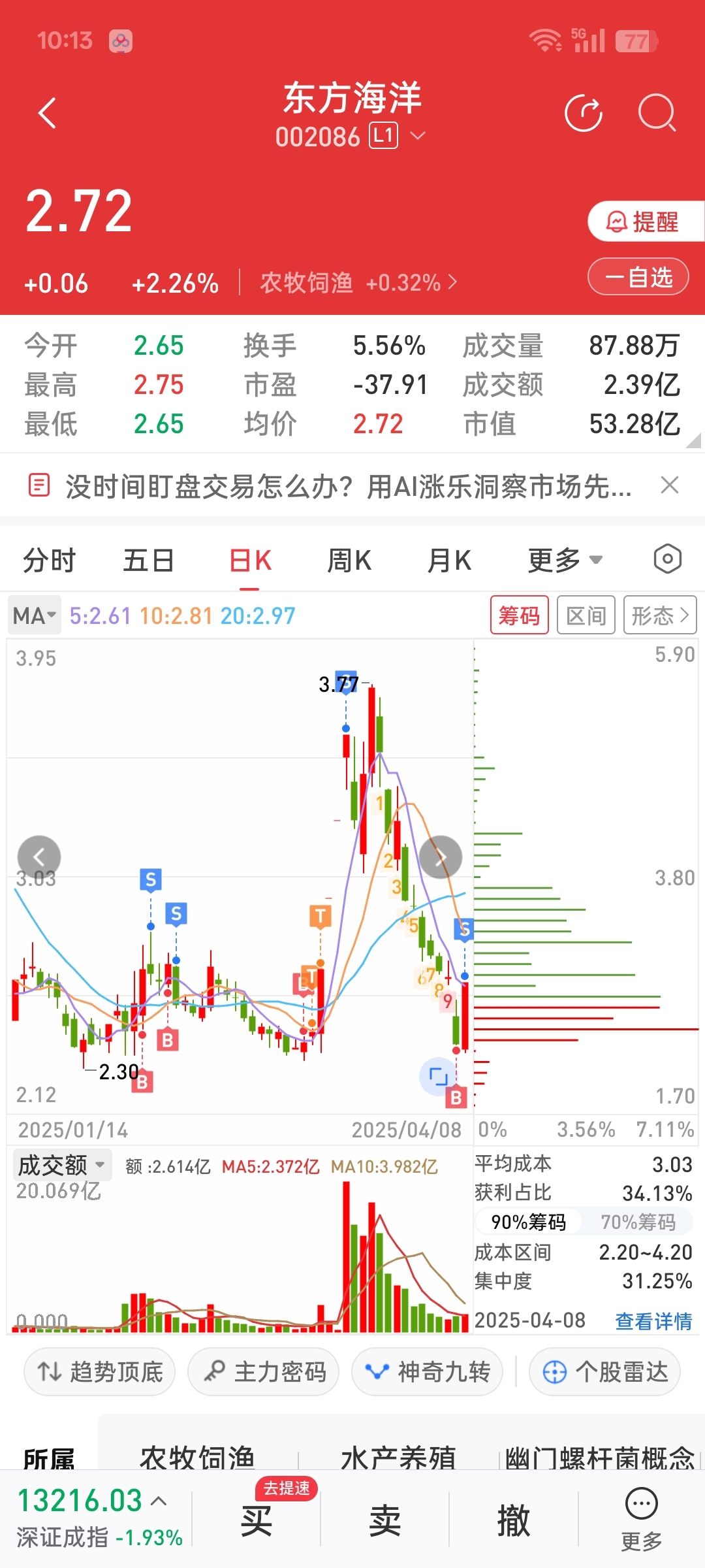 $东方海洋(SZ002086)$ 感谢东方海洋老桩,拉高我就砸