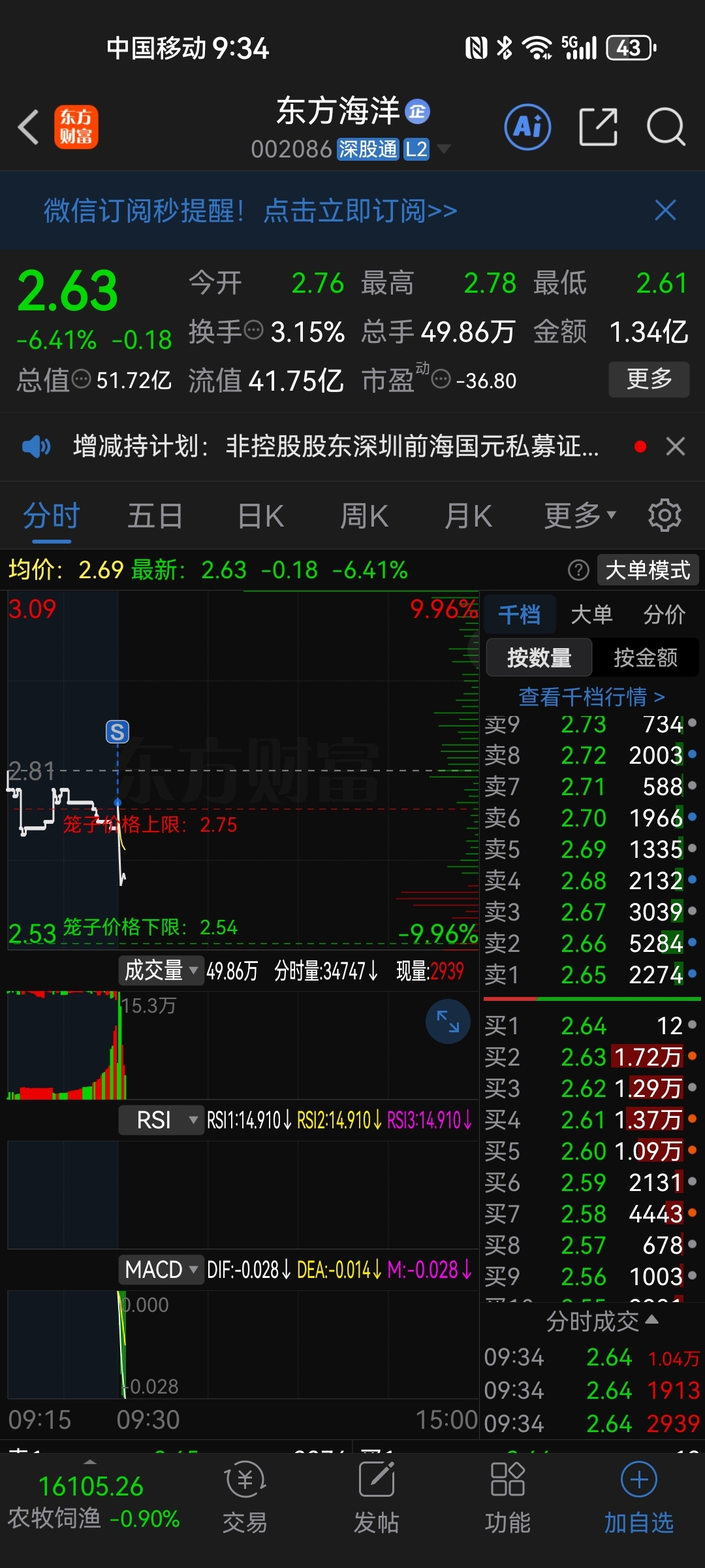 $东方海洋(SZ002086)$ 玛德!竞价就跑看来是对了