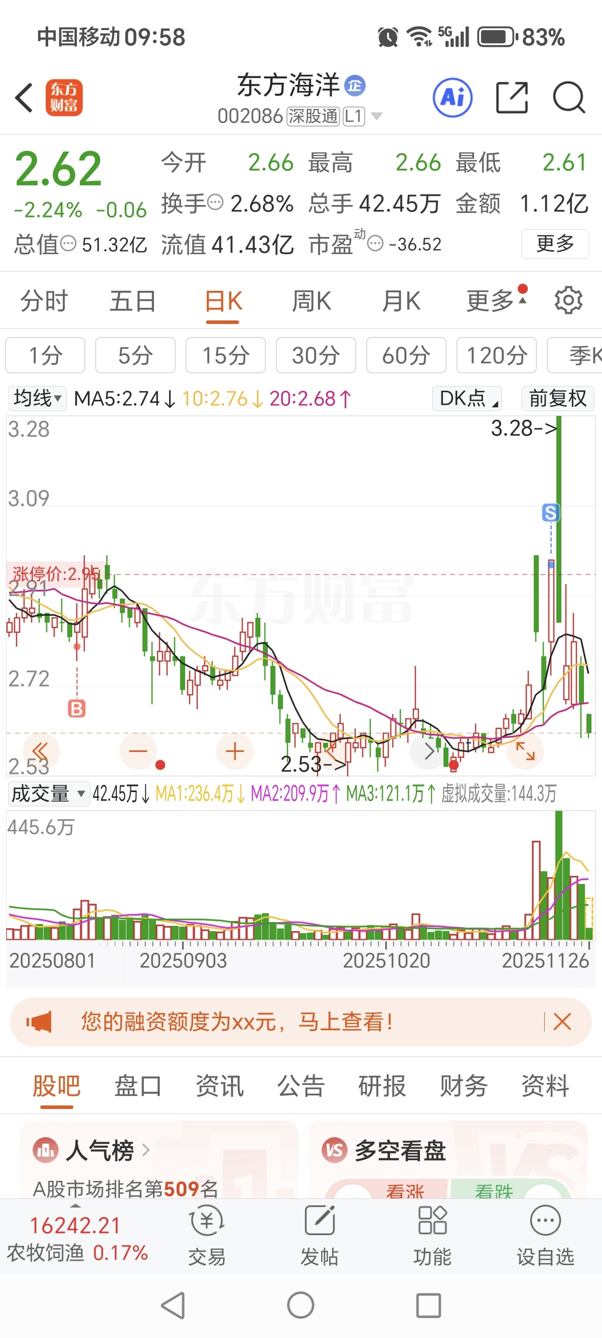 $东方海洋(SZ002086)$ 垃圾不需要格局,有点利润就得跑