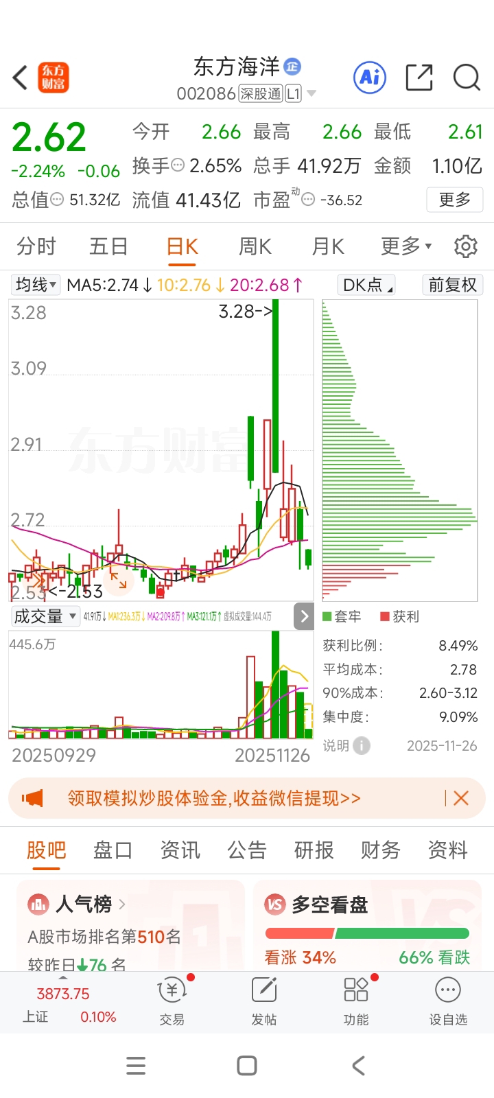 $东方海洋(SZ002086)$ $航天发展(SZ000547)$ $国联水产(SZ300094)$ 垃圾水产,一分钱一天