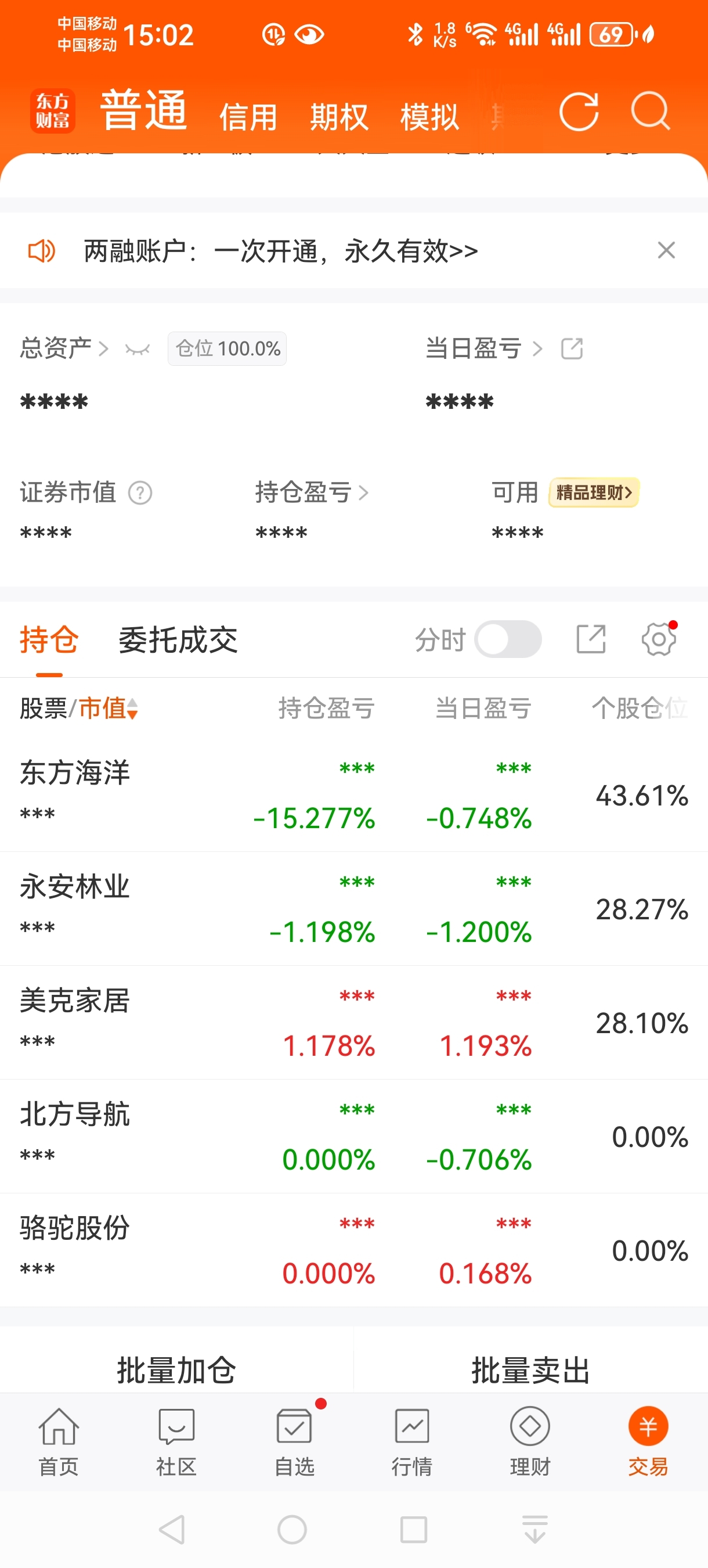 $东方海洋(SZ002086)$ 真垃夸,亏15个点尾盘出了一部分进了美克家居