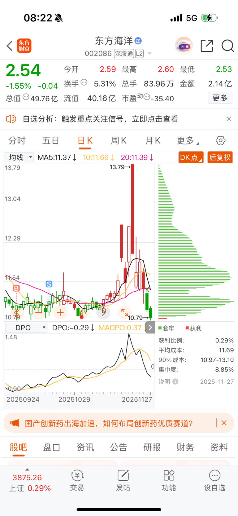 $东方海洋(SZ002086)$ 这套的都没看