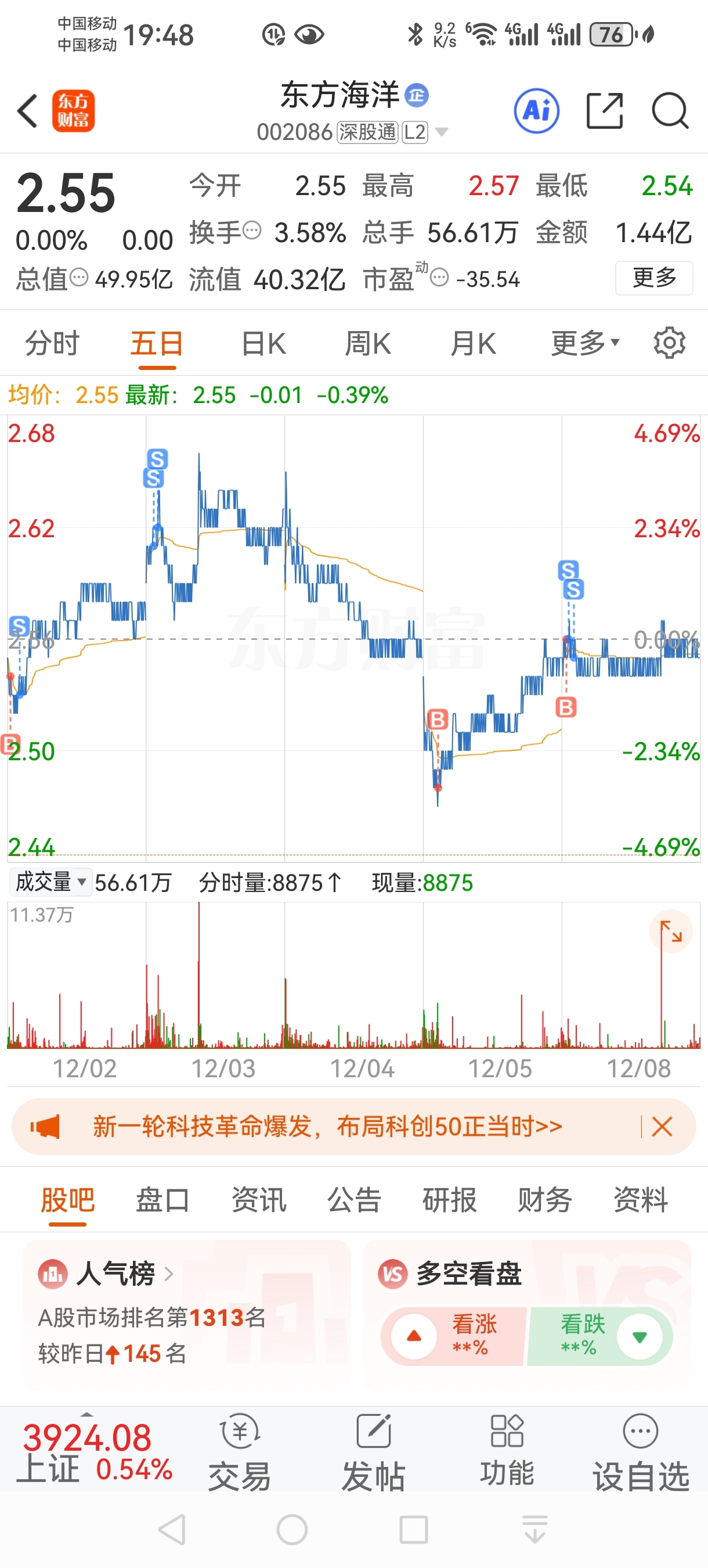 $东方海洋(SZ002086)$ 就算要涨也要做好被洗掉一层皮的打算,就是个黑心庄有利就出,低位合适就补点