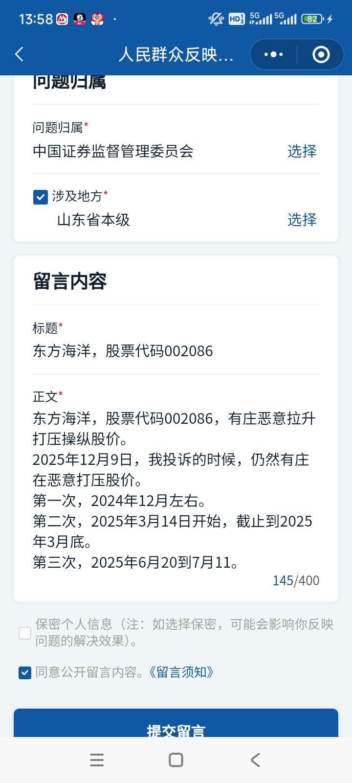 2025年12月9日,我投诉的时候,仍然有庄在恶意打压股价。
