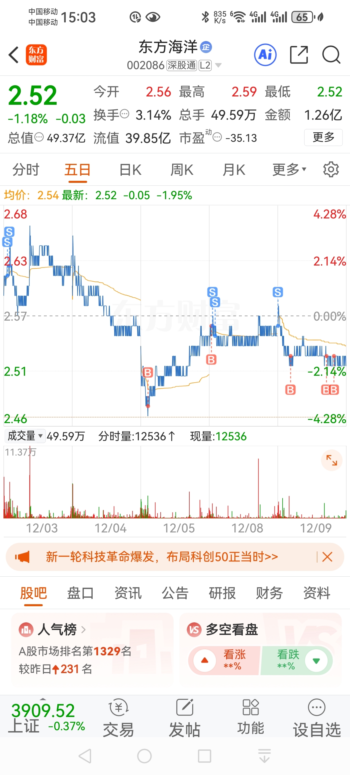 $东方海洋(SZ002086)$ 52买不进去,亏个手术费又加点仓