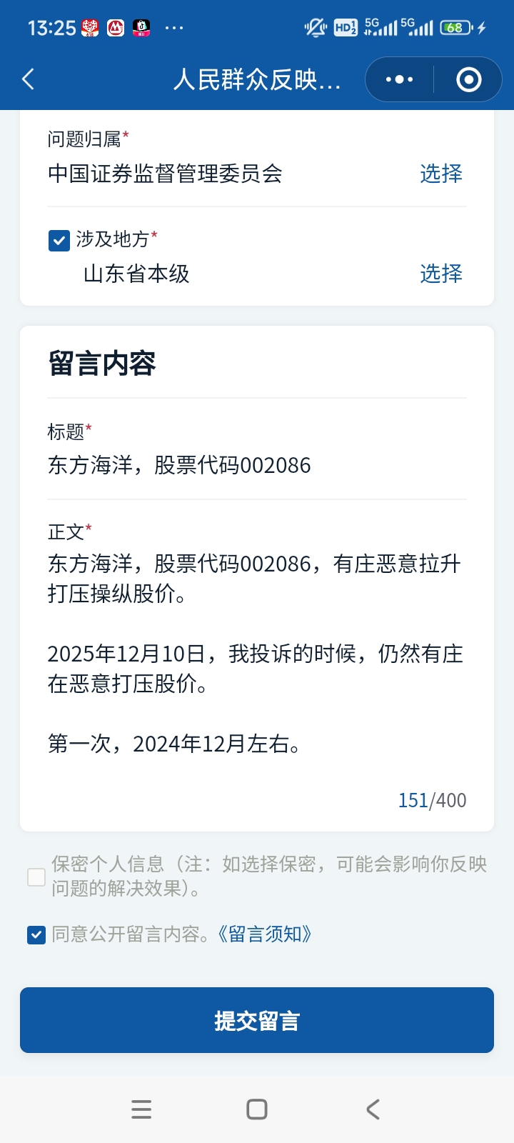 2025年12月10日,我投诉的时候,仍然有庄在恶意打压股价。