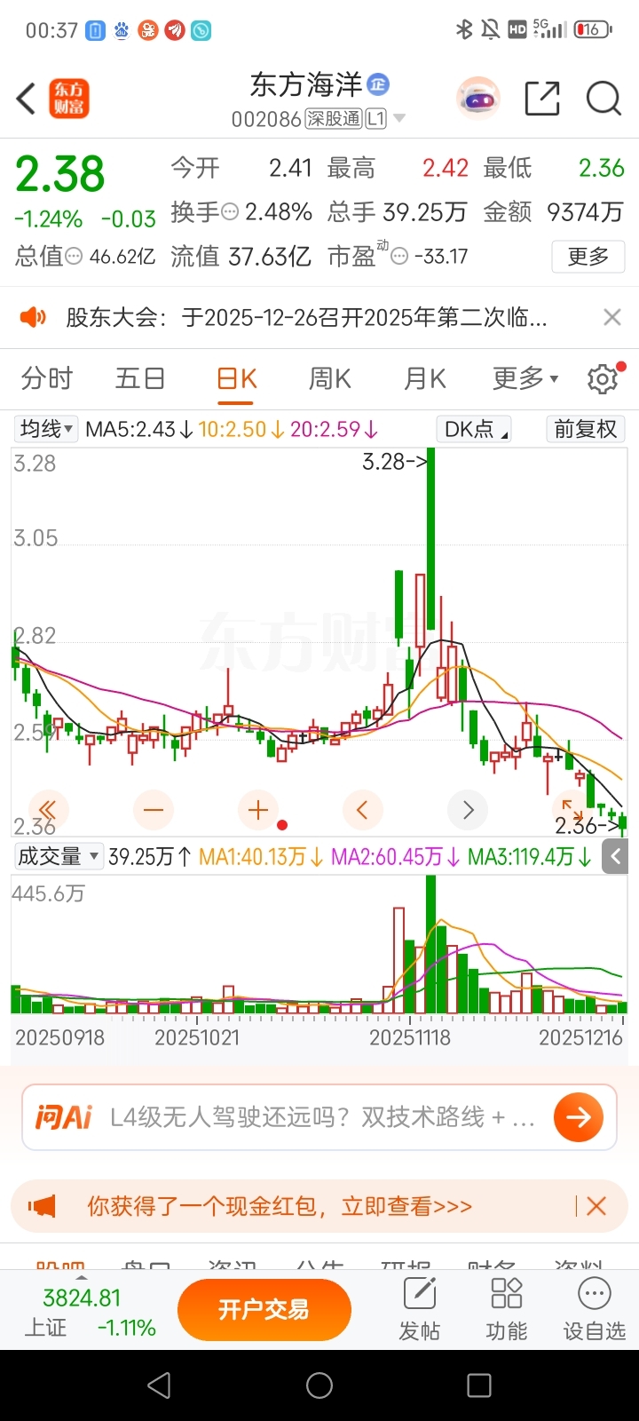 一共三块来钱的股,生生的跌了一块!跌了3分之1。市值缩水13到14亿。就为了减持那一个来亿。损失巨大!